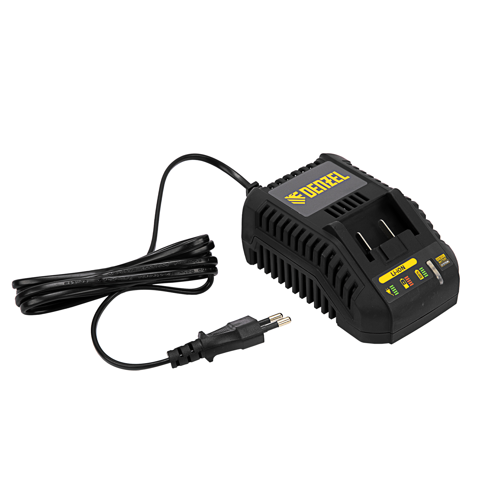 - Универсальность — аккумулятор 4 А/ч Li-ion совместим с любым инструментом 18V Denzel battery system серии IB.