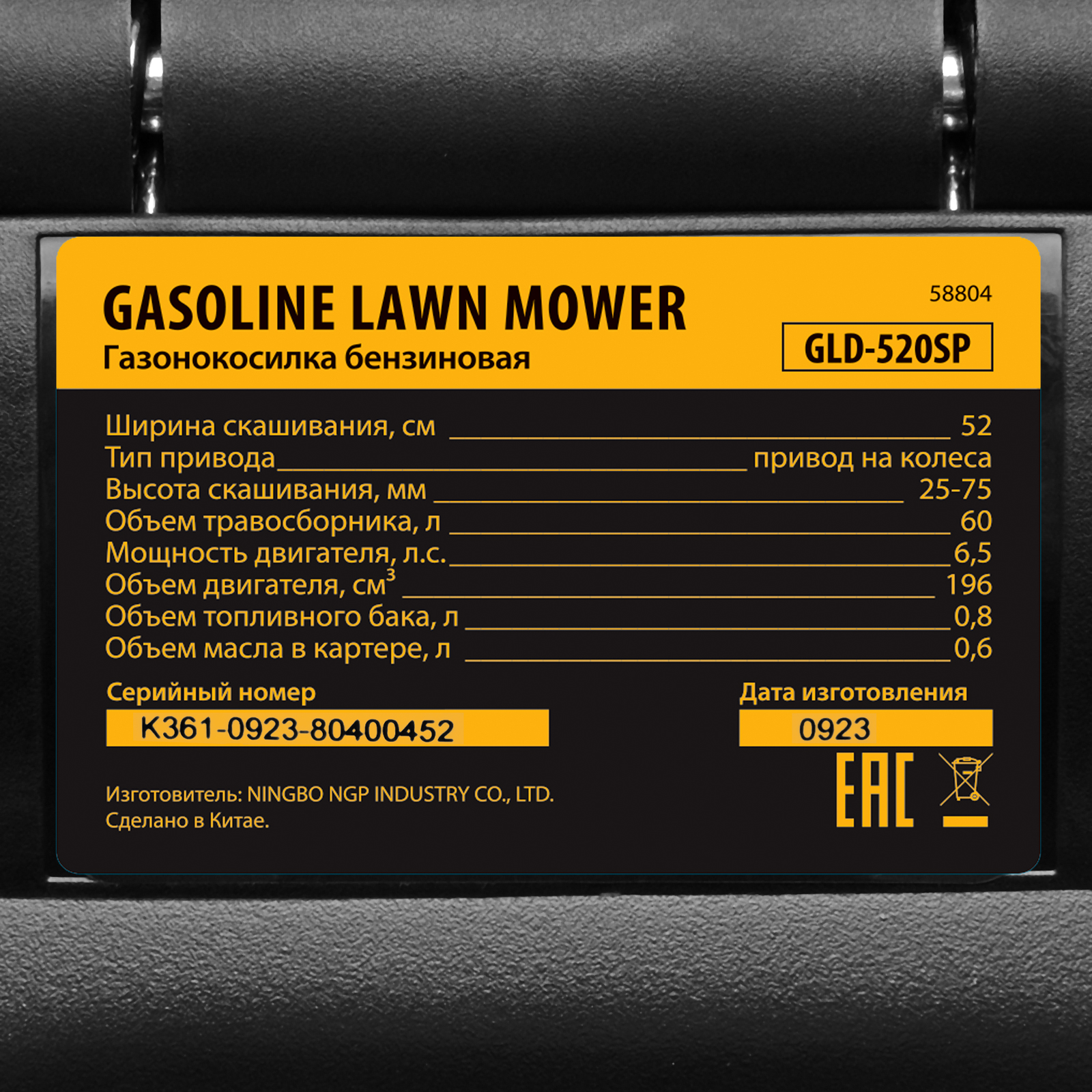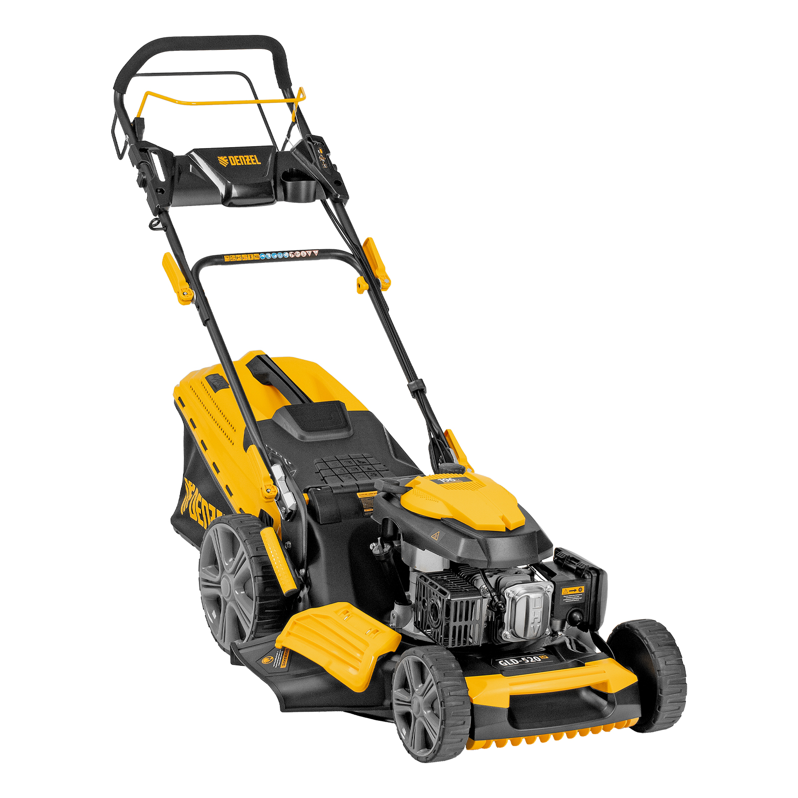 Бензиновая газонокосилка Denzel GLD-520SP 58804 с приводом оснащена двигателем объемом 196 см3, травосборником на 60 л и обеспечивает ширину скашивания 52 см за один проход. Предназначена для скашивания газонной травы на приусадебном участке. Мощности изделия в 6,5 л. с. достаточно для облагораживания даже поросшей бурьяном территории или участков со стеблями. Ширина скашивания в 52 см позволяет эффективно обработать 3700 м2 всего за 2 часа.