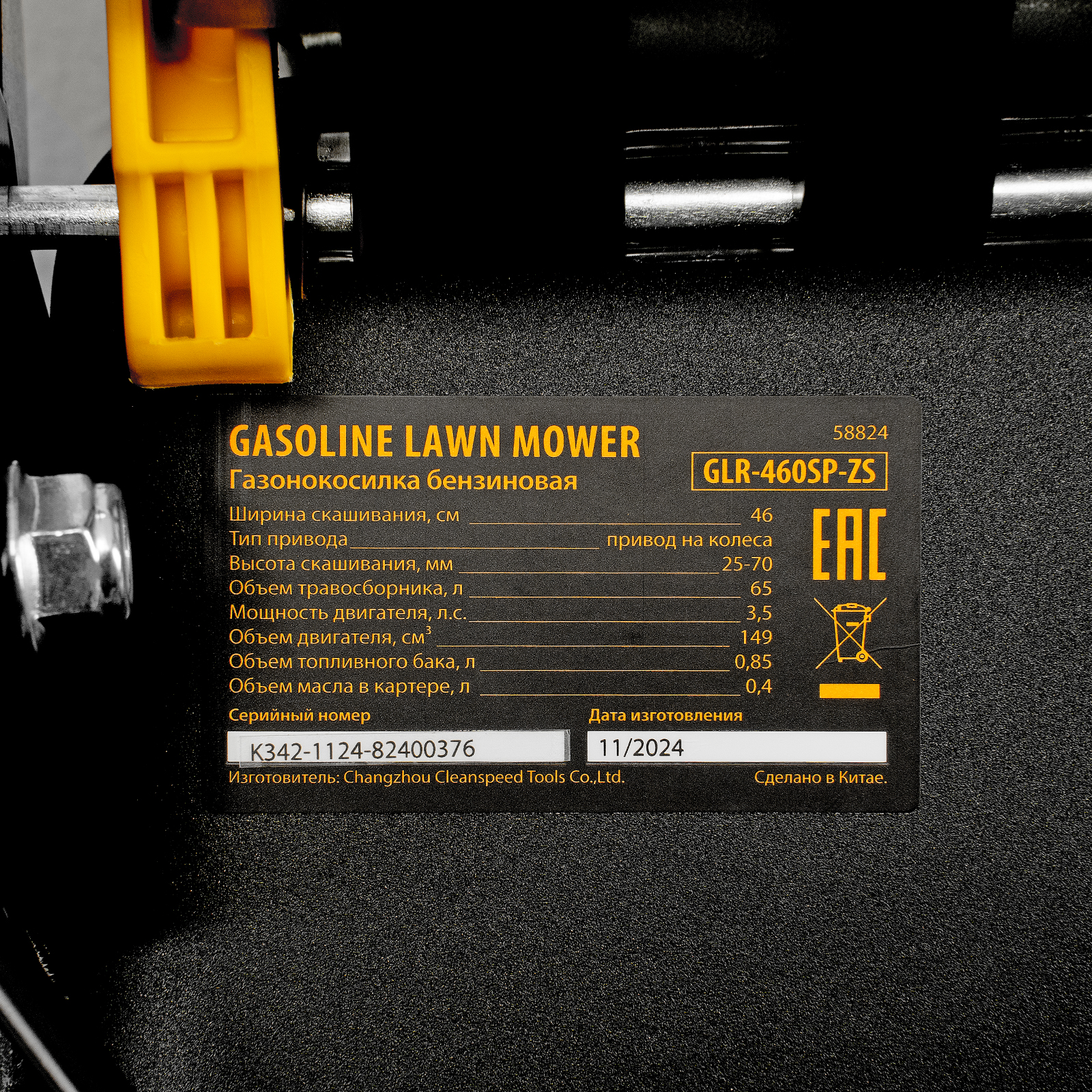 Газонокосилка бензиновая GLR-460SP-ZS, 149 см3, ширина 46 см, привод, травосборник 65 л Denzel в Уфе