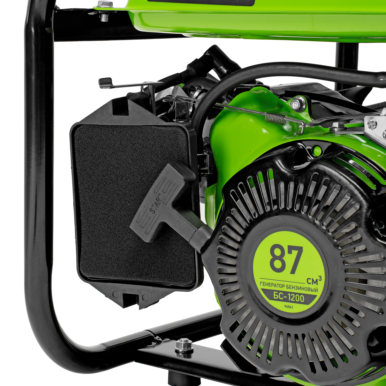 - Прочная конструкция — стальная рама защищает генератор от повреждений, а ее верхние элементы можно использовать как ручки для транспортировки.