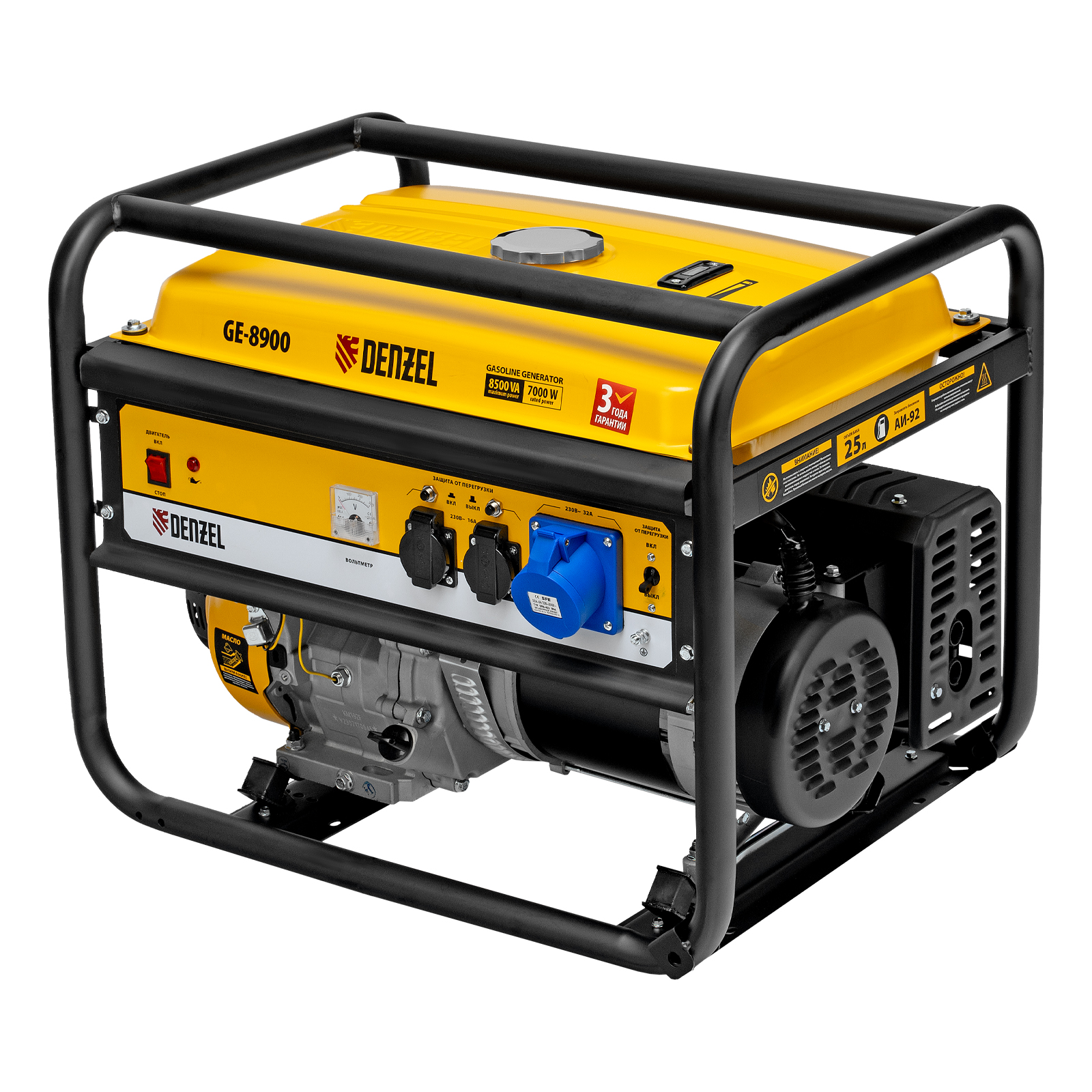 Генератор бензиновый GE 8900, 8.5 кВт, 220 В/50 Гц, 25 л, ручной старт Denzel в Уфе