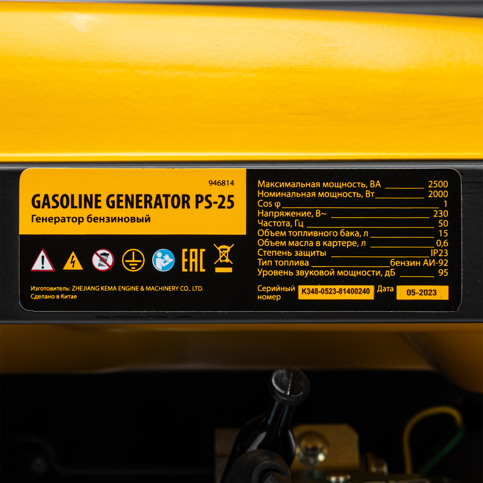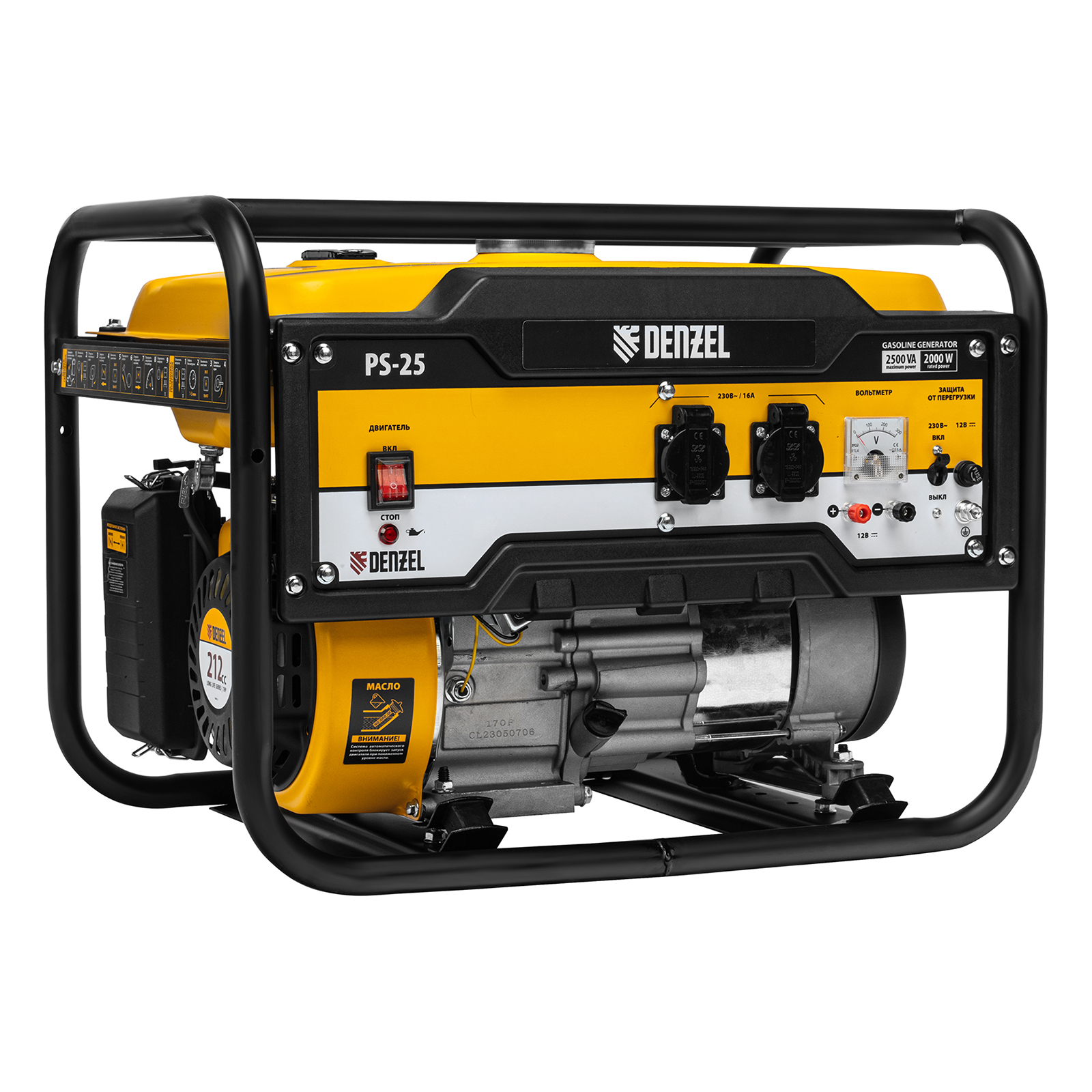 Генератор бензиновый PS 25, 2.5 кВт, 230 В, 15 л, ручной стартер Denzel в Уфе