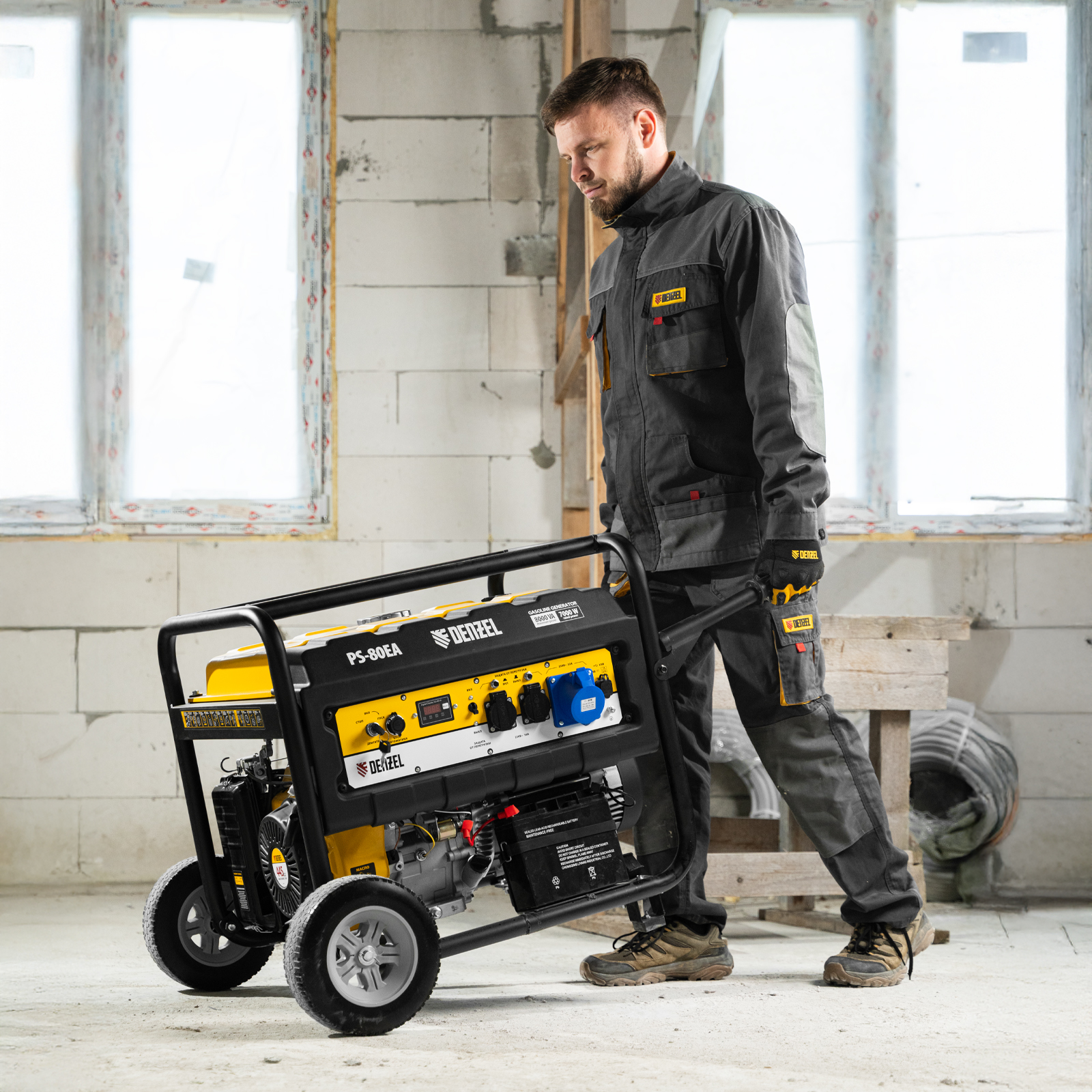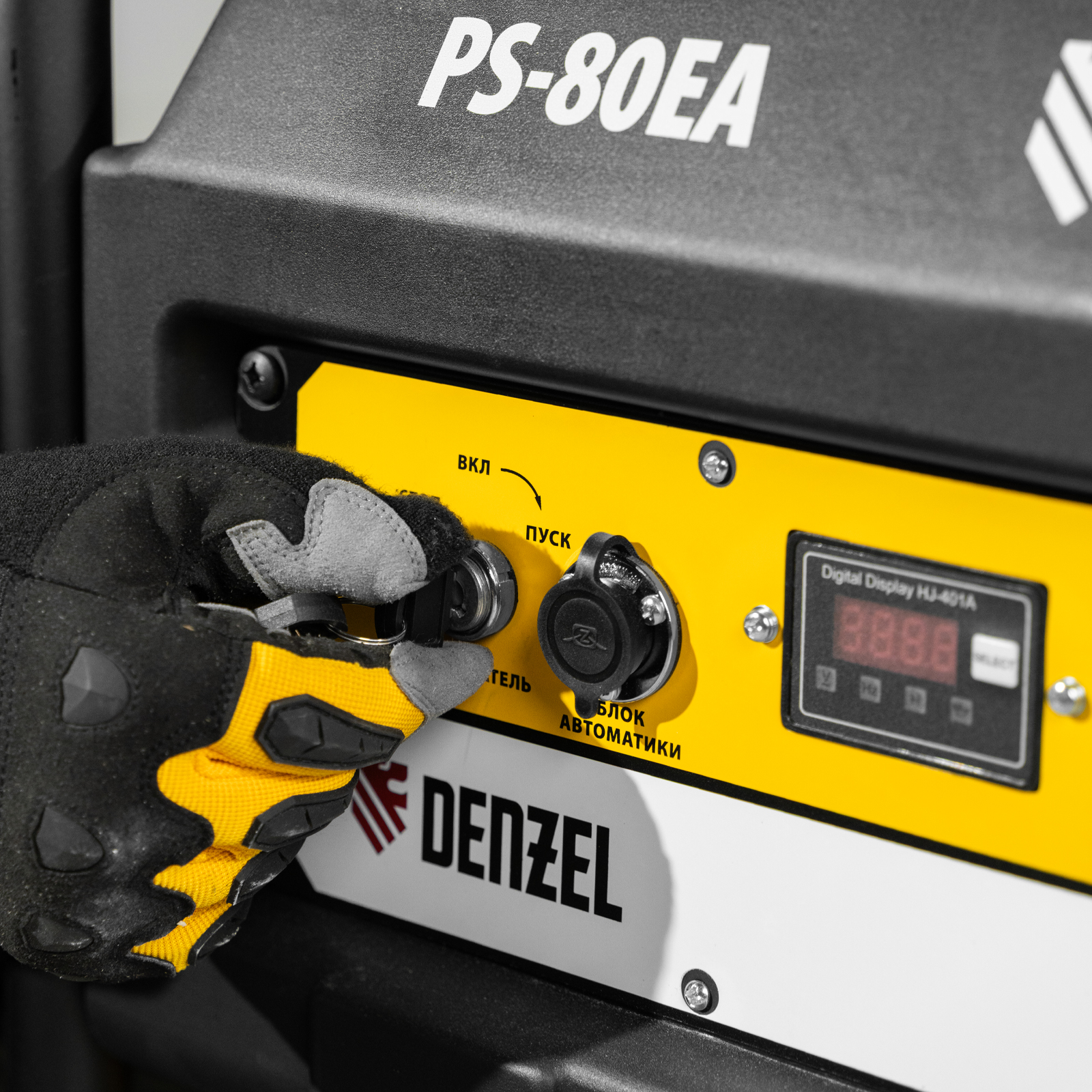 Генератор бензиновый PS 80 EA, 8.0 кВт, 230 В, 25 л, коннектор автоматики, электростартер Denzel в Уфе