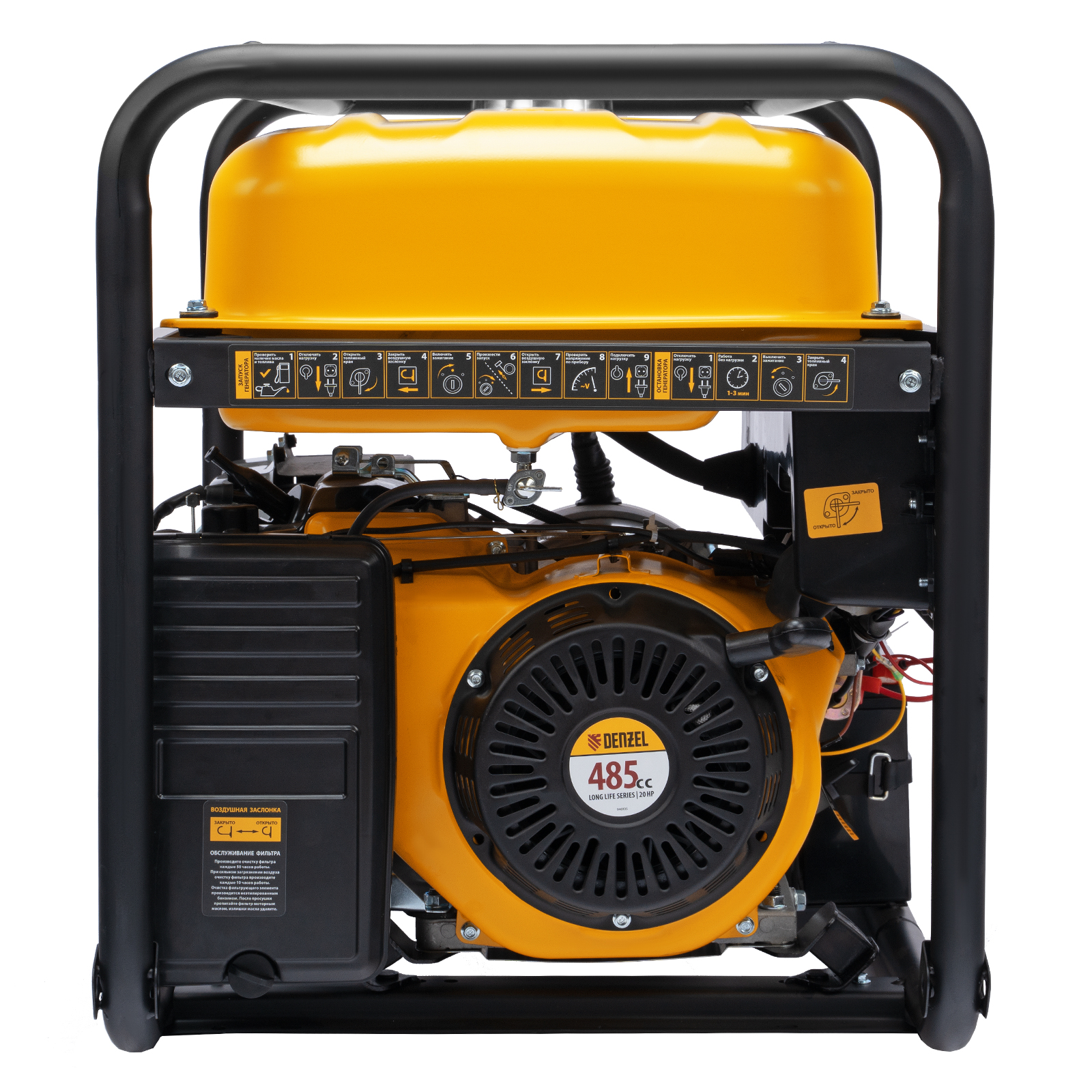 - Удобная транспортировка — на генератор можно установить транспортировочный комплект Denzel 946725 (приобретается отдельно).