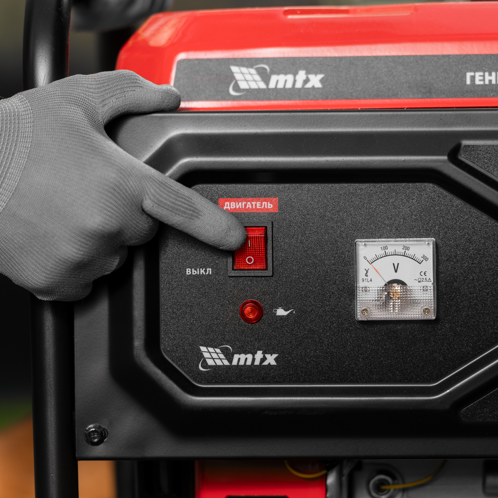 - Удобная панель управления — вольтметр позволяет контролировать напряжение, специальный индикатор предупредит о низком уровне масла.