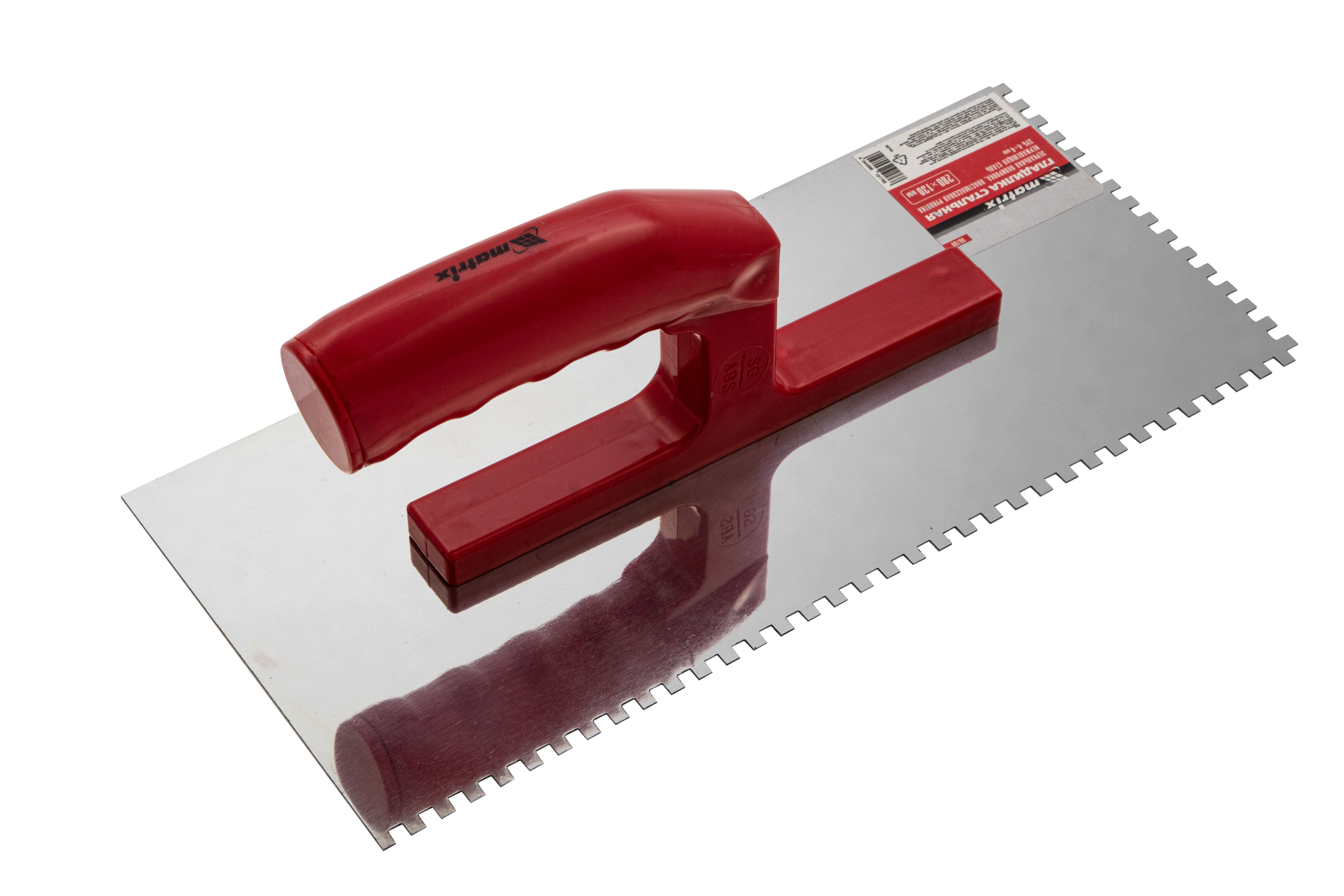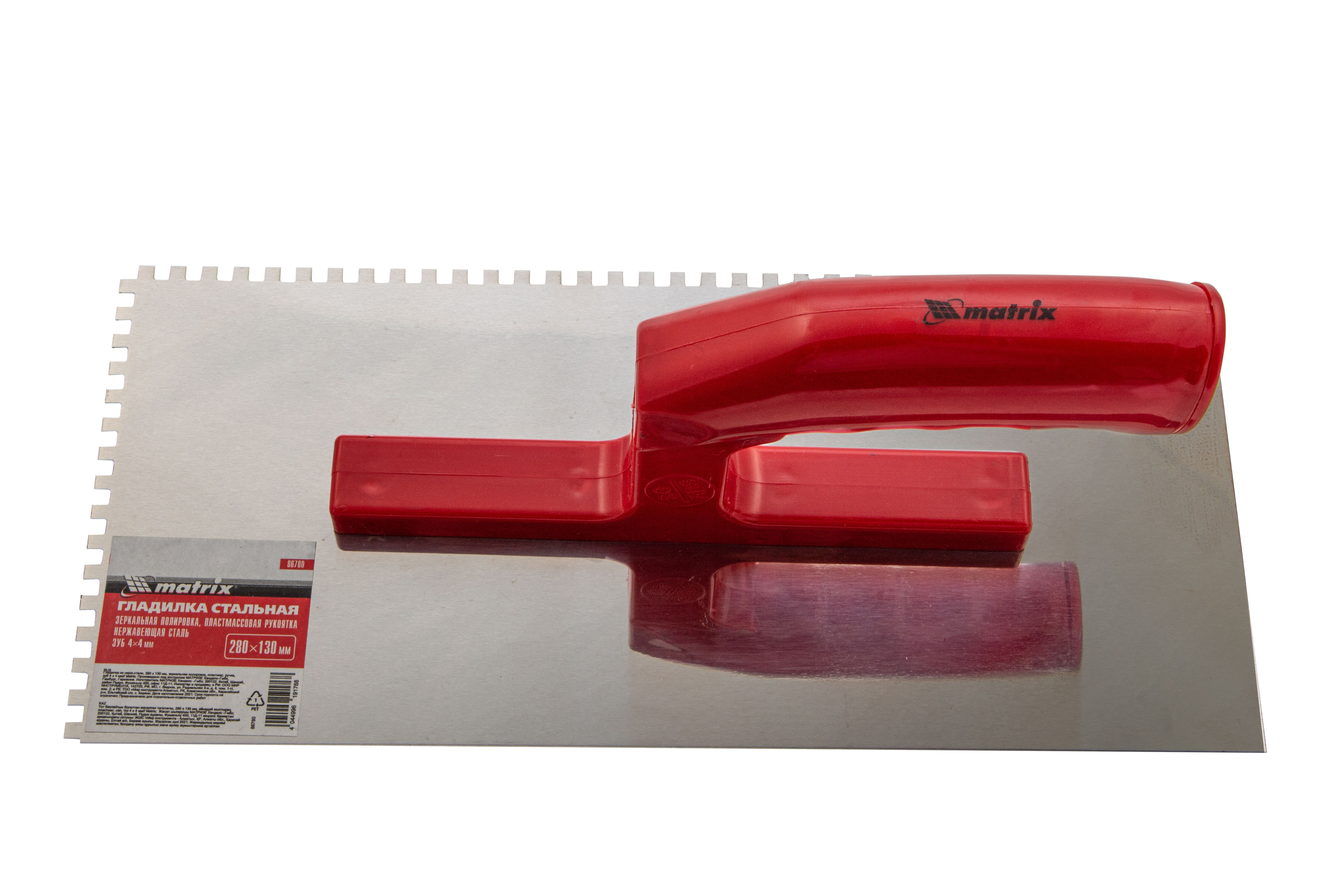 Гладилка Matrix 86780 размером 280 x 130 мм, из нержавеющей стали, с зубьями 4 x 4 мм, зеркальной полировкой и пластмассовой ручкой, пригодится любителям и частным мастерам при проведении ремонтных работ. Она позволяет равномерно наносить строительные растворы и плиточный клей на подготовленные под отделку поверхности.