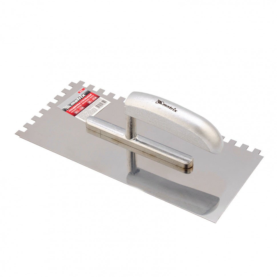 Гладилка из нержавеющей стали, 280 x 130 мм, деревянная ручка, зуб 8 x 8 мм Matrix в Уфе