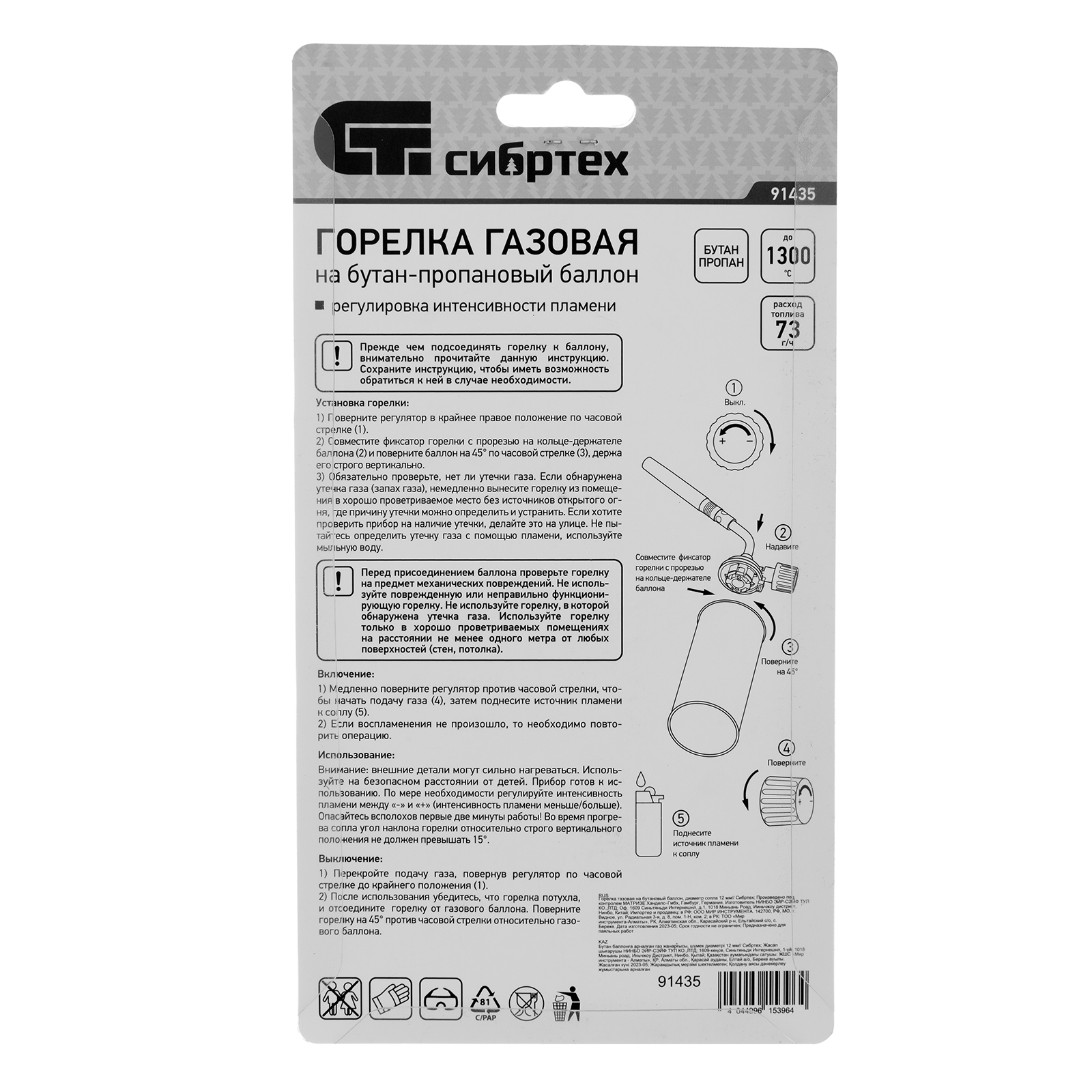 Газовая горелка Сибртех 91435 с диаметром сопла 12 мм предназначена для установки на пропан-бутановый баллон. Используется для нагрева труб и различных деталей, пайки, розжига огня без химических средств. Горелка будет полезна дома, в гараже, на даче или пикнике.
