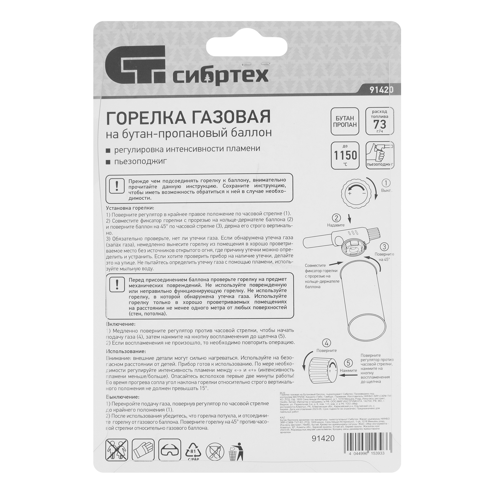 Газовая горелка Сибртех 91420 с пьезоподжигом предназначена для установки на бутановый баллон. Позволяет развести огонь без применения химических средств, нагреть замерзшие детали или пластиковые поверхности для сгибания, а также спаять медные трубы. Горелка пригодится в домашнем хозяйстве, в походе или на даче, а также будет полезна во время ремонта автомобиля.