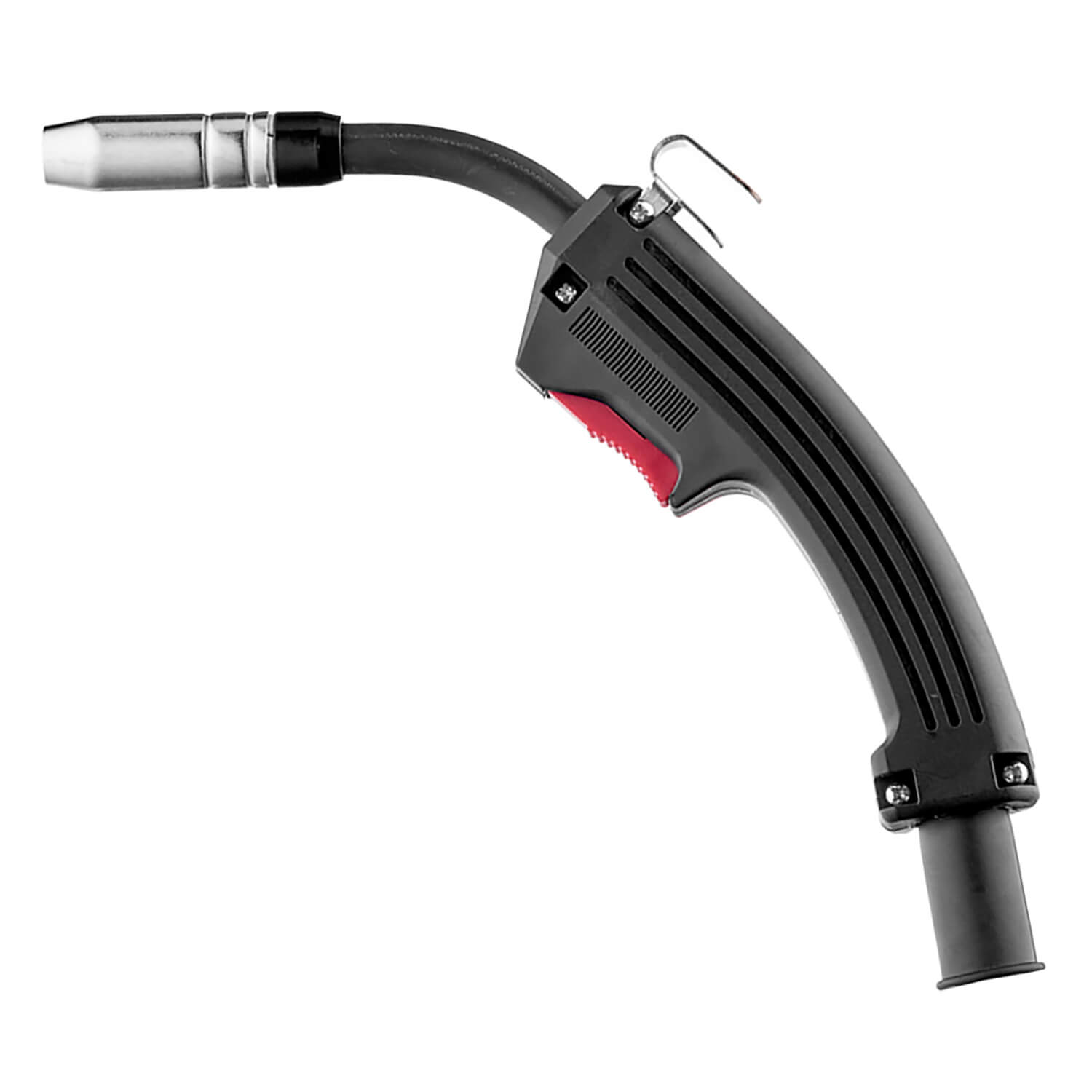 - Горелка с воздушным охлаждением, которая совместима с аппаратами полуавтоматической сварки без центрального евроразъема. Газовый клапан встроен в рукоятку горелки.