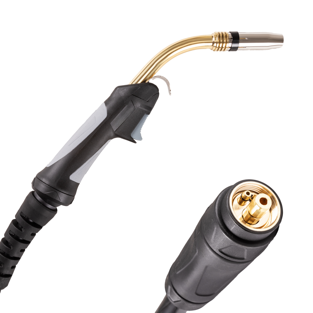 Сварочная горелка SAGGIO MIG-24 5М Шарнирная предназначена для полуавтоматической сварки MIG/MAG в среде защитных газов. SAGGIO MIG-24 5М используется как в промышленности, так и в бытовых условиях при максимальном токе 250 Ампер. Удобная рукоятка с кнопкой и эргономичный дизайн горелки обеспечивают максимальный комфорт во время работы. Шарнирное соединение рукоятки и рукава снижает нагрузку на кисть и запястье сварщика. Горелка имеет воздушное охлаждение и предназначена для работы со сварочной проволокой диаметром 0,8 – 1,2 мм.ЭРГОНОМИЧНОСТЬ: Благодаря продуманному контурному дизайну, разработанному специально для удобного хвата, рукоятка горелки идеально лежит в руке. Мягкие резиновые вставки с ребристой поверхностью исключают скольжение, снижая утомляемость руки и запястья сварщика.ШАРНИРНОЕ СОЕДИНЕНИЕ: Шарнир между рукояткой горелки и рукавом обеспечивает лёгкое вращение головки горелки, уменьшает нагрузку на руку и запястье и снижает износ кабеля.УЛУЧШЕННАЯ ГАЗОВАЯ ЗАЩИТА: Уникальная конструкция позволяет использовать защитный газ для улучшения охлаждающего эффекта гусака горелки и расходников передней части.УДОБНОЕ ХРАНЕНИЕ: С помощью специального крюка можно подвешивать горелку во время пауз в работе или хранить на стене среди других инструментов.100% КОНТРОЛЬ КАЧЕСТВА: Все горелки проходят строгие испытания с использованием компьютерного и автоматизированного тестового оборудования на этапе от разработки до производства. Наши компоненты проходят тщательную проверку контроля качества перед сборкой. Все модели отличаются прочностью, устойчивостью к повреждениям и соответствуют стандарту EN60974-7.ПРЕИМУЩЕСТВА:Эргономичная система рукоятки исключает скольжение в руке, повышает производительность подачи проволоки и проста в обслуживанииПрочный и надёжный гусак, изготовленный из специальных изоляционных материалов, которые устойчивы к высоким температурам и снижают риск короткого замыканияКонтактный наконечник из твёрдого медного сплава с высокой проводимостьюКрючок для подвешивания горелки и удобного храненияВоздушное охлаждениеСтильный обновлённый дизайнЕвро разъёмФУНКЦИОНАЛЬНЫЕ ОСОБЕННОСТИ:ЕВРО-РАЗЪЁМ: Стандартный евро-разъём горелки даёт возможность подключения к большинству современных сварочных полуавтоматов.КОМПЛЕКТАЦИЯ: Горелка SAGGIO MIG-24 5М Шарнирная – 1 шт.; Сопло SAGGIO MIG-24 Ø13 мм коническое – 1 шт.; Держатель наконечника SAGGIO MIG-24 M6 – 1 шт.; Наконечник SAGGIO M6х28х1,0 ECu (140.0242/MD0009-10) – 1 шт.; Диффузор газовый SAGGIO MIG-24 керамический – 1 шт.; Канал направляющий 5 м для проволоки 0,8 - 1,2 мм сталь – 1 шт.