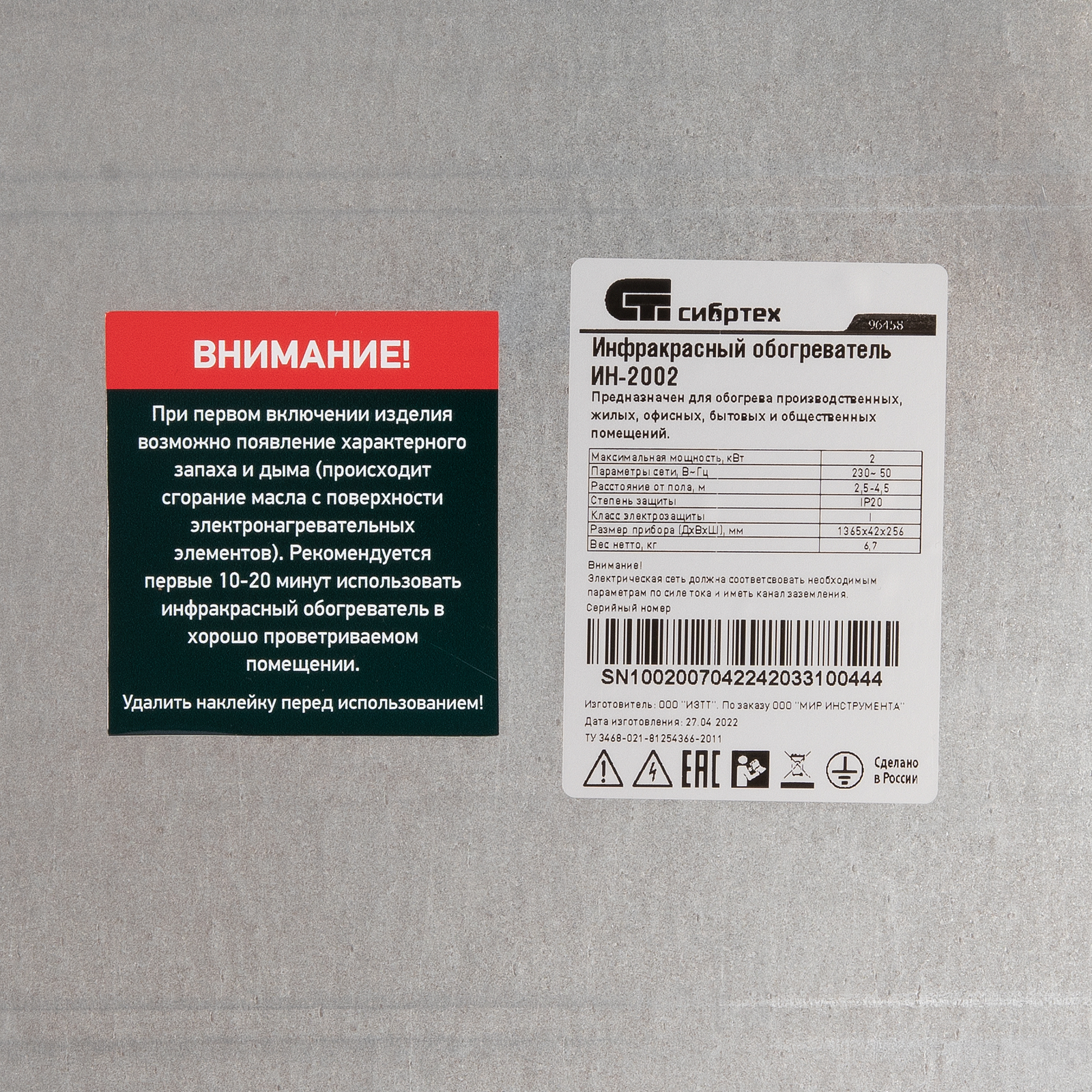 Инфракрасный обогреватель ИН- 2002, 230В, 2000 Вт Сибртех в Уфе