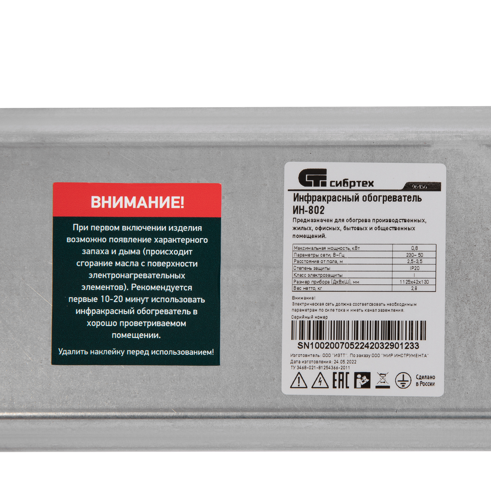 Инфракрасный обогреватель ИН- 802, 230В, 800 Вт Сибртех в Уфе