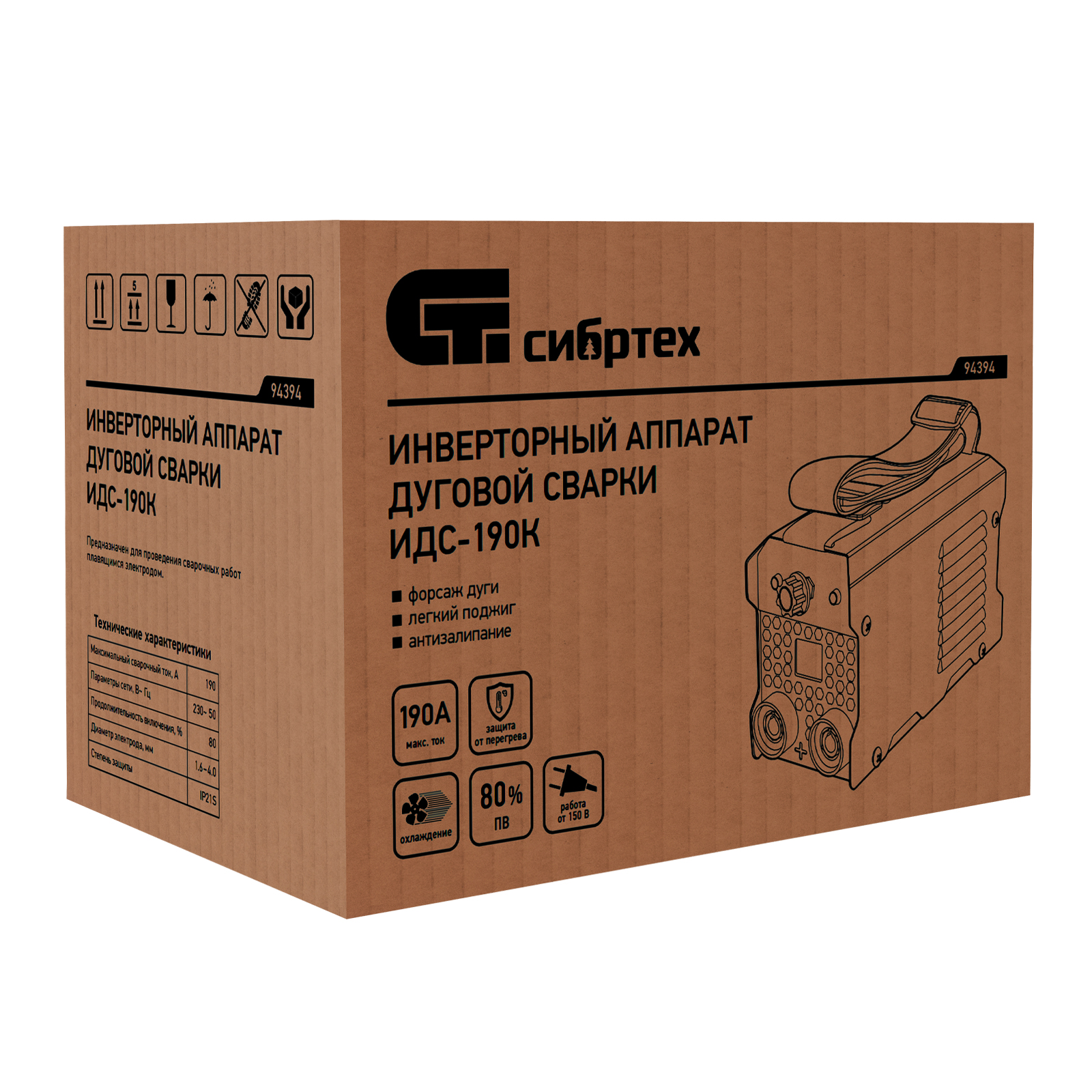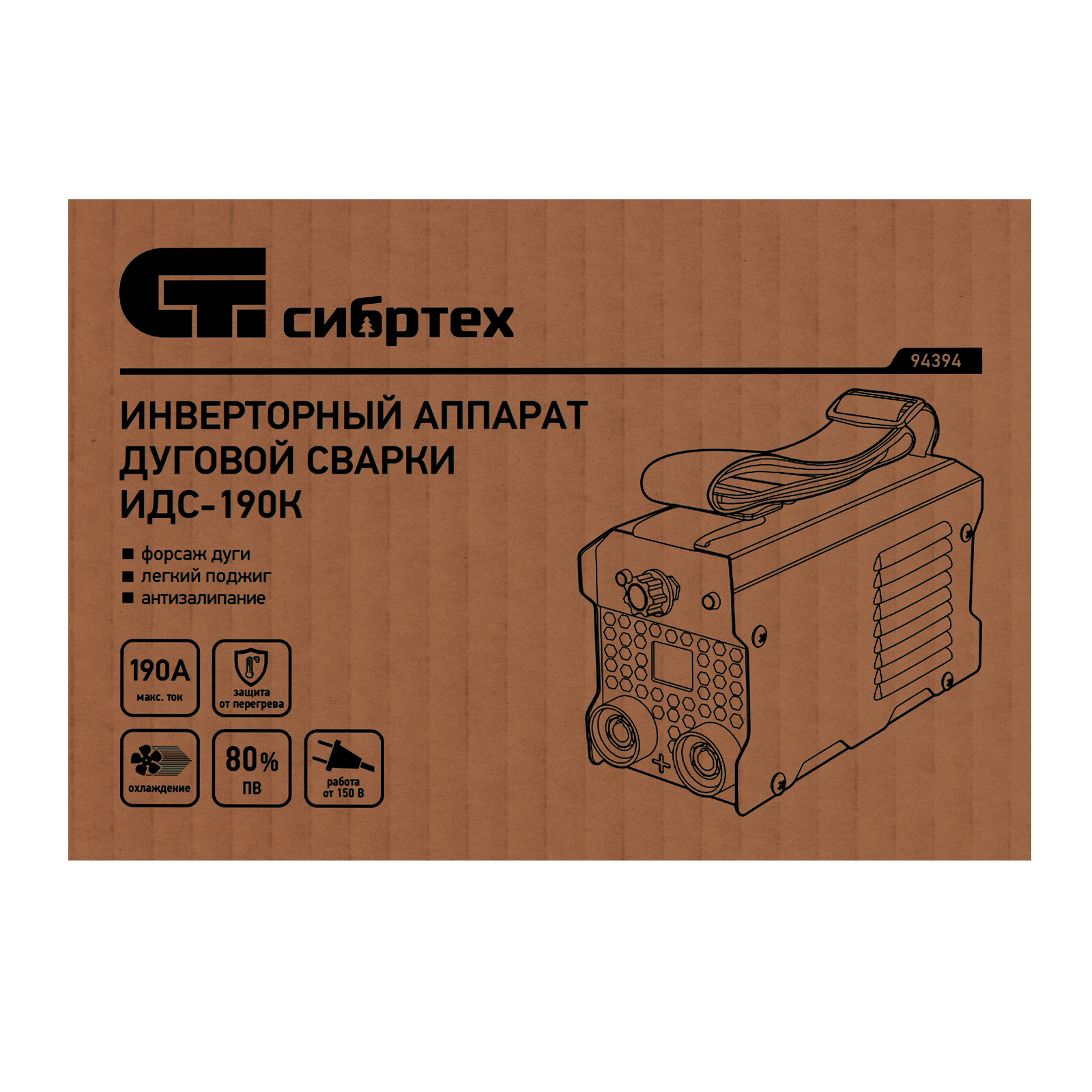 Инверторный аппарат дуговой сварки ИДС-190K, 190 А, ПВ 80%, диаметр электрода 1,6-4 мм Сибртех в Уфе