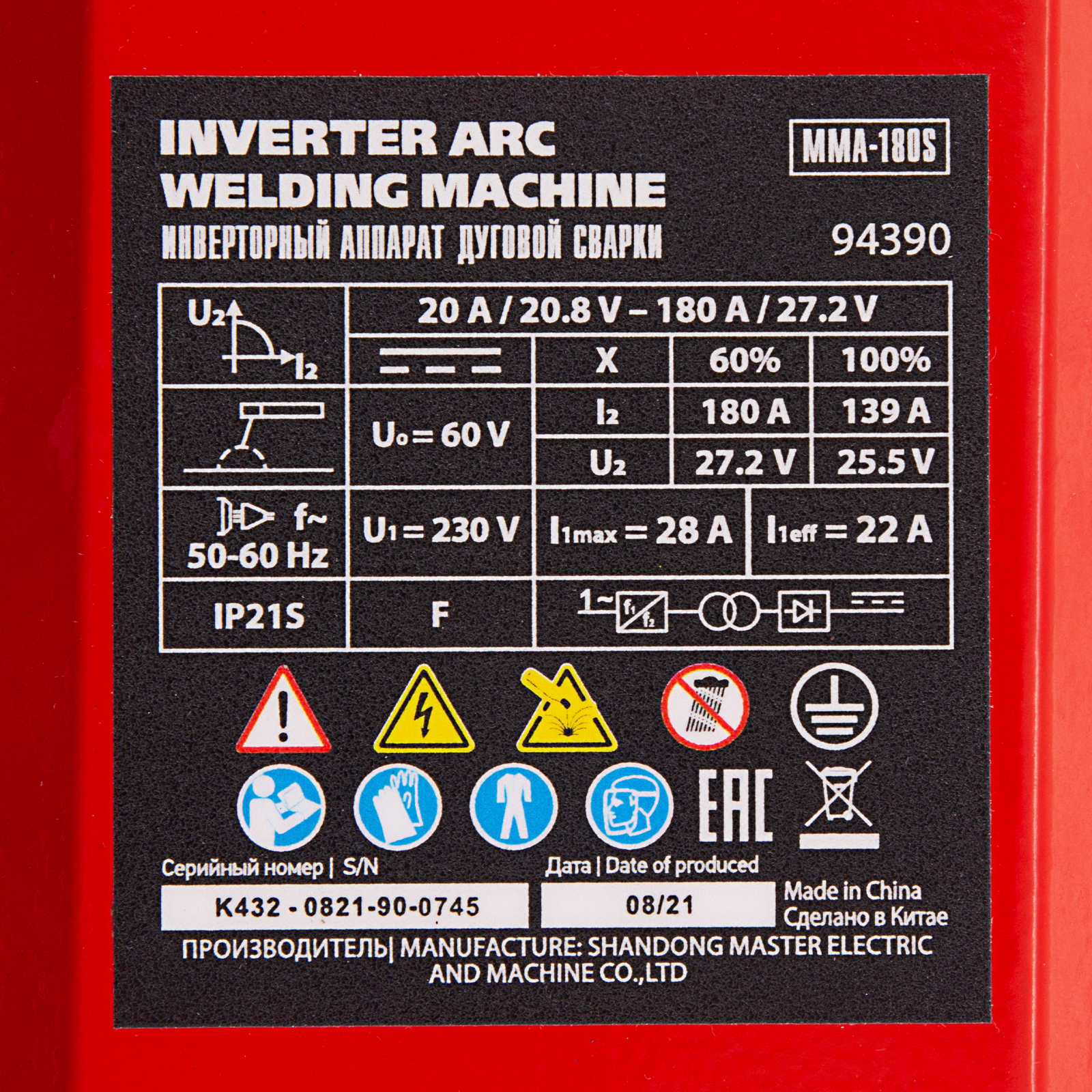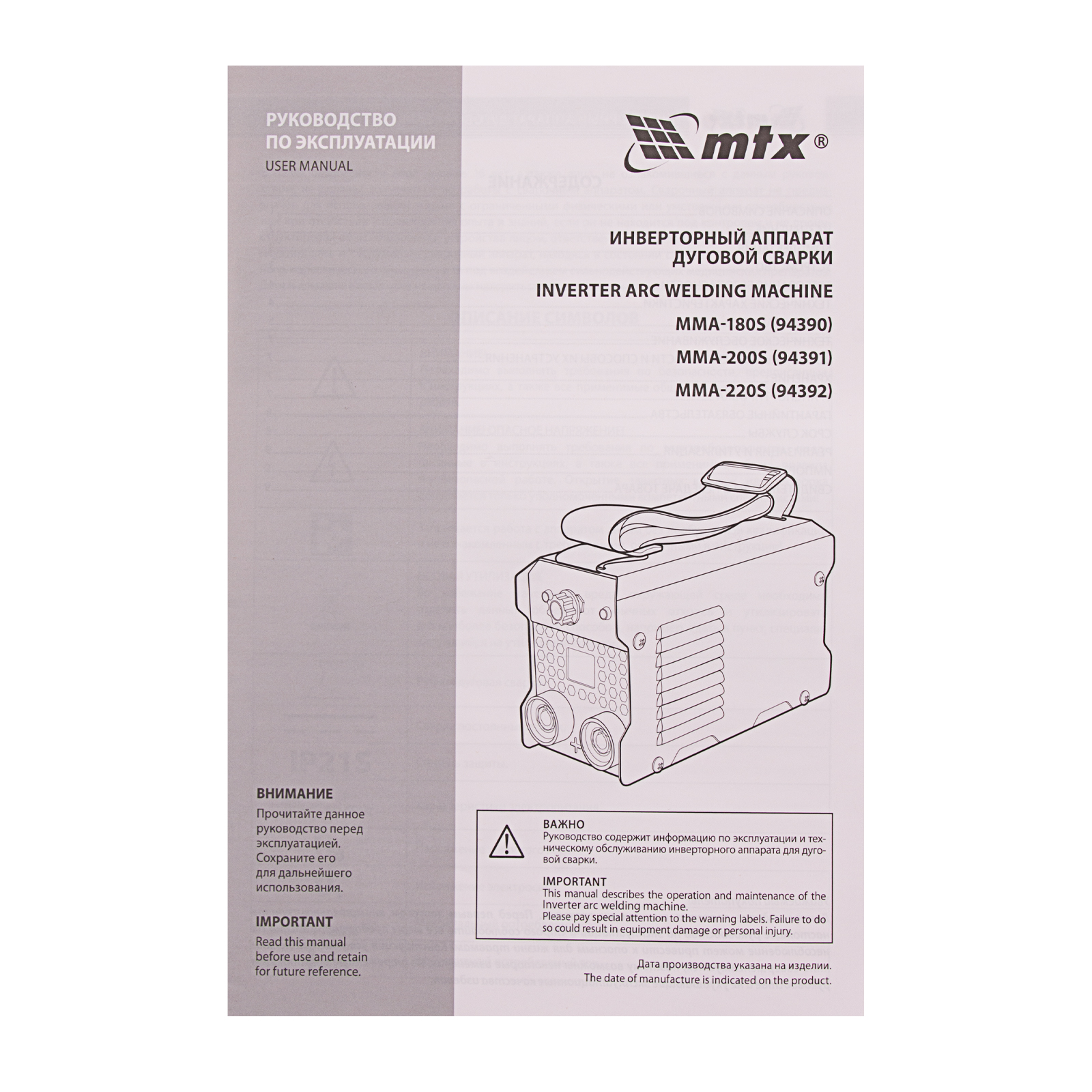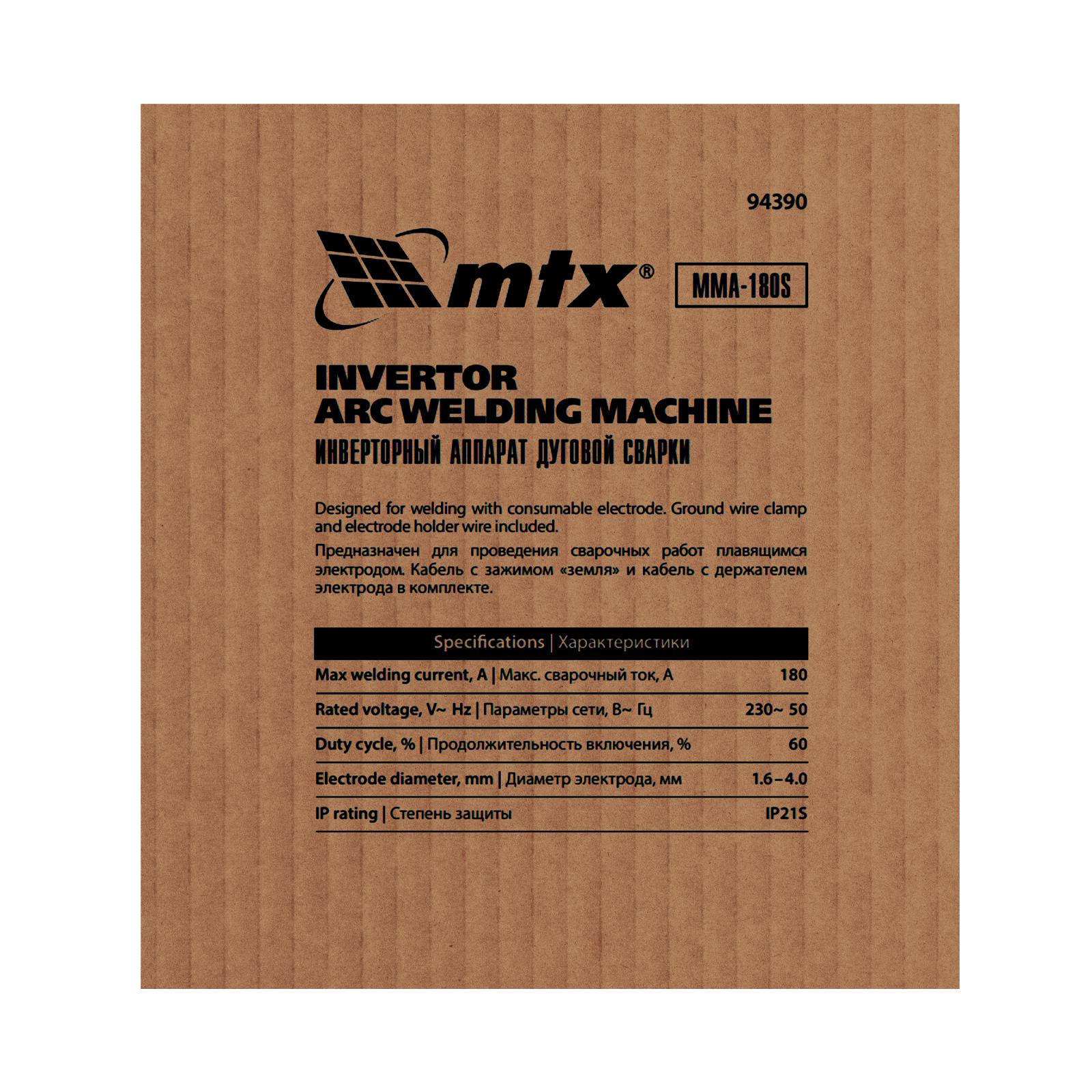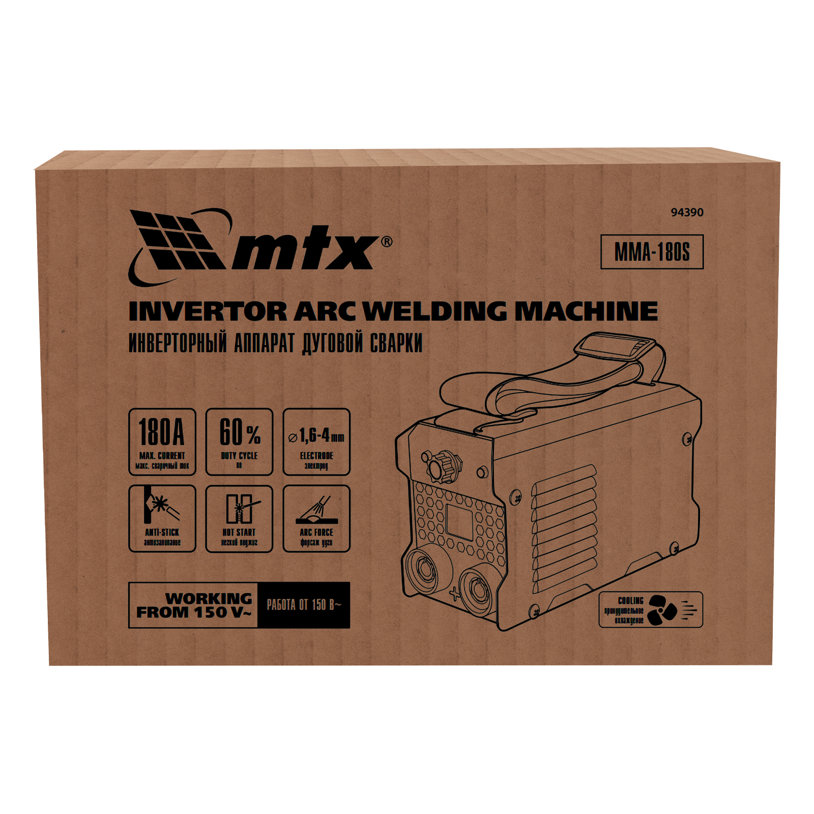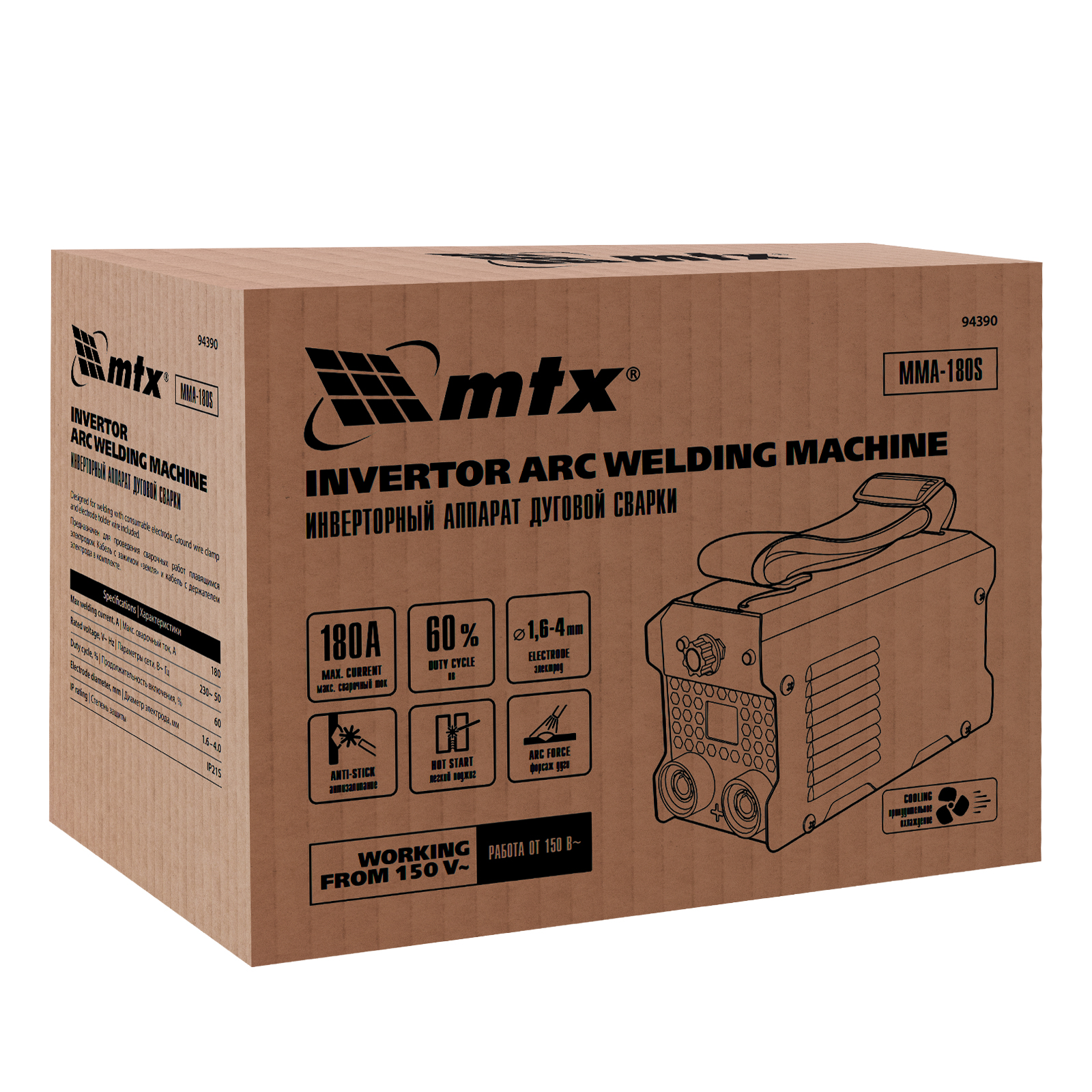 Инверторный аппарат дуговой сварки MMA-180S, 180 А, ПВ60%, диаметр электрода 1,6-4 мм MTX в Уфе