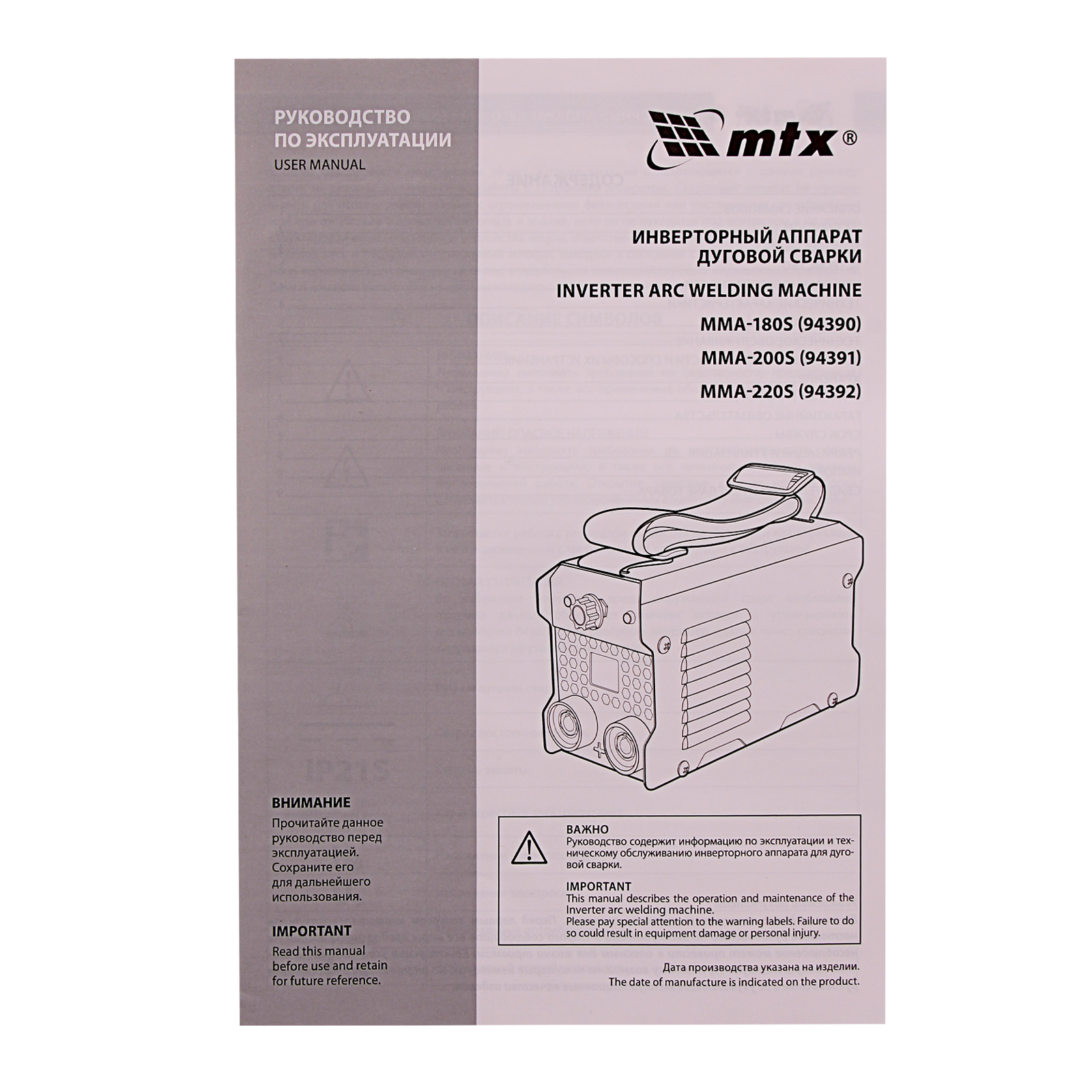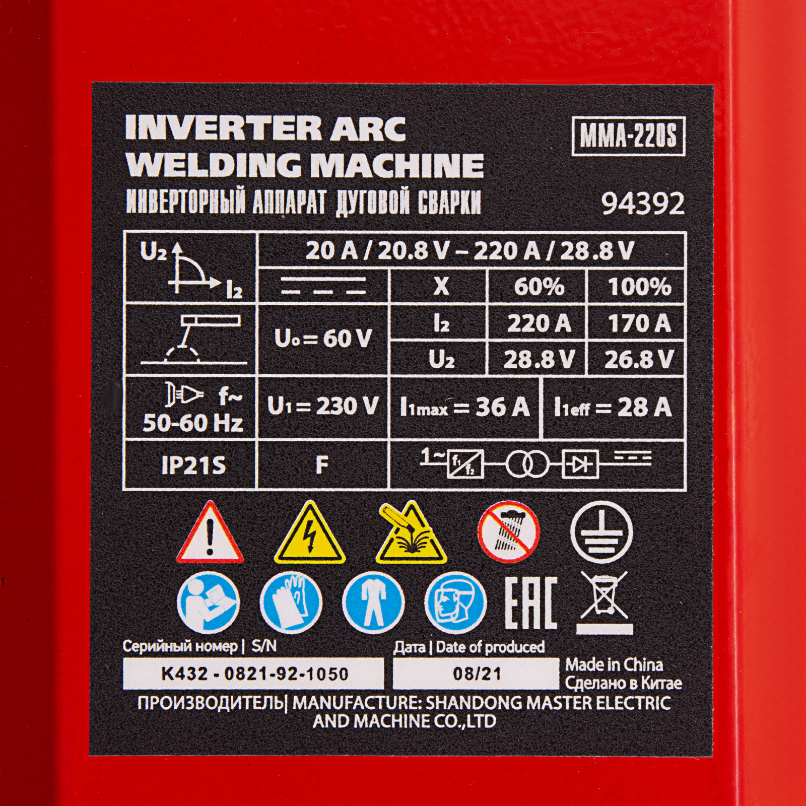 Инверторный аппарат дуговой сварки MMA-220S, 220 А, ПВ60%, диаметр электрода 1,6-5 мм MTX в Уфе