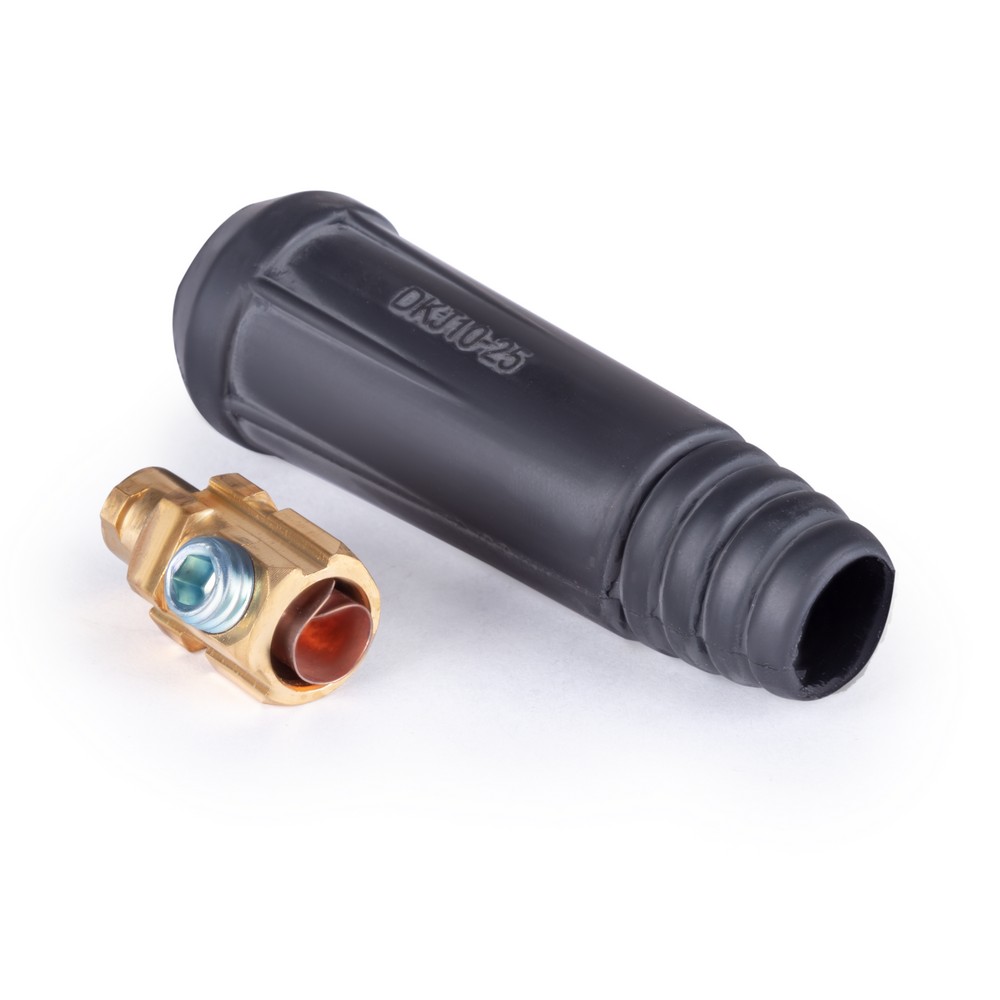 Вилка кабельная (вставка) 10–25 используется для надёжного и безопасного подключения кабелей к сварочным аппаратам, а также для соединения нескольких сварочных кабелей между собой. Конструктивно вставка выполнена в виде быстросъемного байонетного кабельного разъёма.