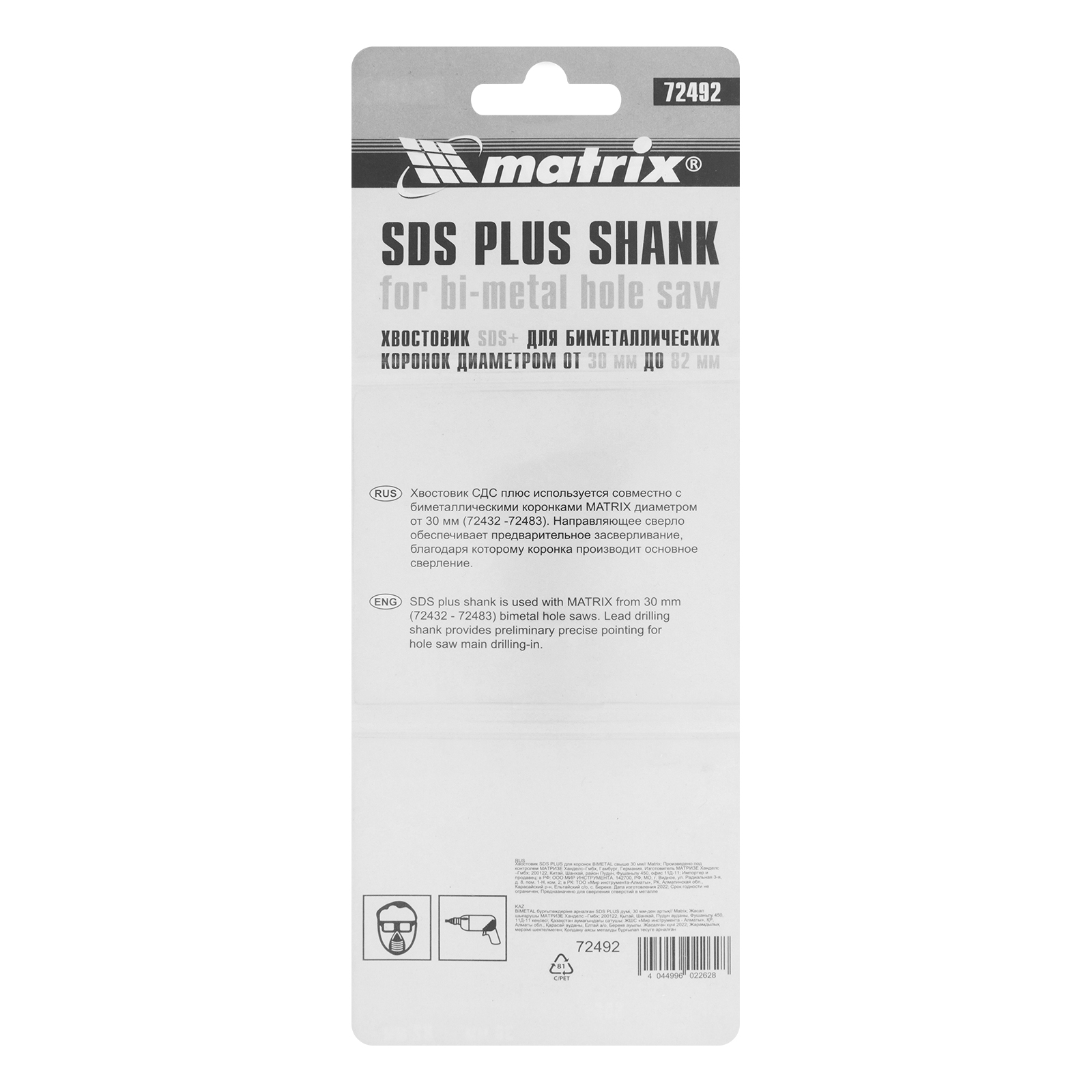 Хвостовик SDS Plus для коронок Bimetal свыше 30 мм Matrix в Уфе