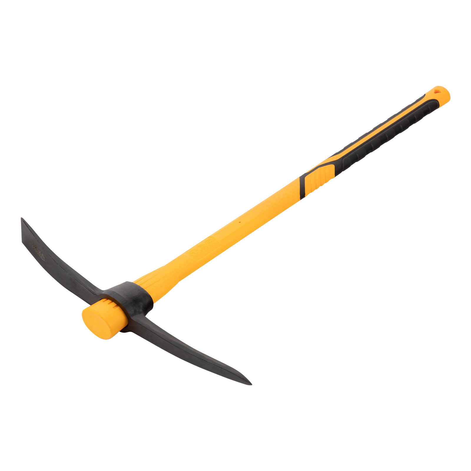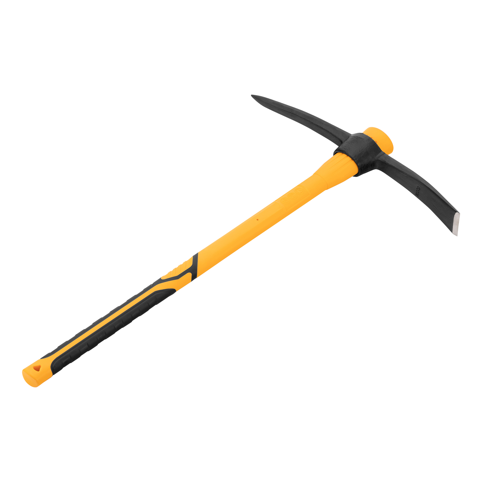 Кирка Denzel 21835 длиной 900 мм, с узкой рабочей частью, головой весом 2000 г и фибергласовой обрезиненной рукояткой, предназначена для работы по камню, рыхления каменистого, пересохшего земляного и глиняного грунта. Может использоваться для разрушения старой кирпичной кладки и колки льда. Инструмент будет полезен на строительной площадке и дачном участке.