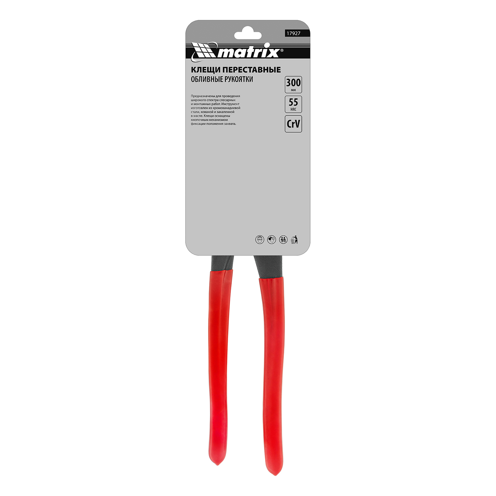 Переставные клещи Matrix 17927 длиной 300 мм, выполненные из хромованадиевой стали, с кнопочным механизмом и обливными рукоятками, используются для проведения монтажных и слесарных работ. Универсальный инструмент заменяет ключи различных размеров и применяется для фиксации заготовок, откручивания гаек, зажима и удержания труб диаметром до 64 мм.