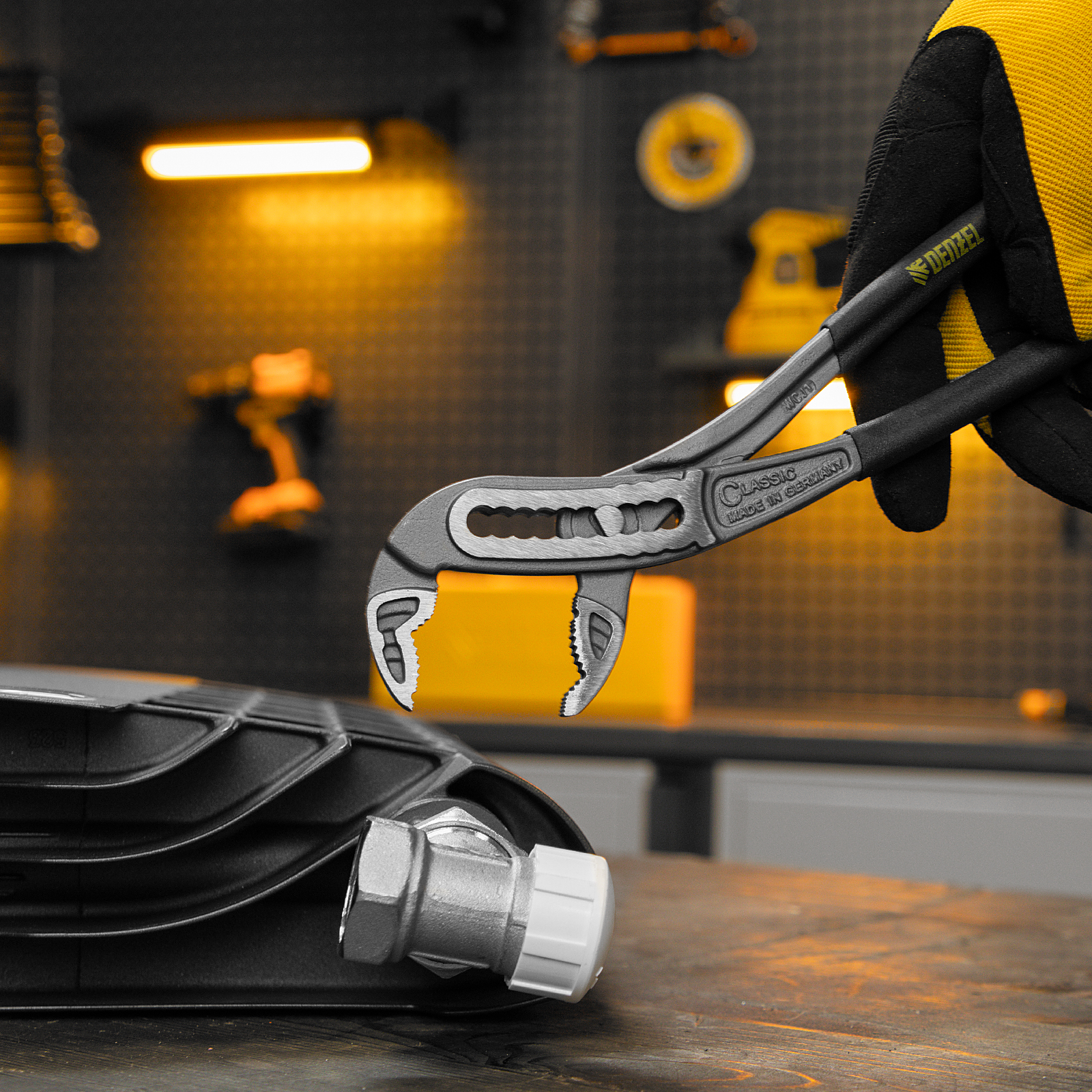 Переставные клещи Denzel 17902 длиной 240 мм, с обливными рукоятками, предназначены для фиксации и вращения деталей и заготовок различной формы. Подходят для захвата фитингов, труб, крепежных элементов. Инструмент используется при проведении ремонтных, монтажных, сантехнических работ.