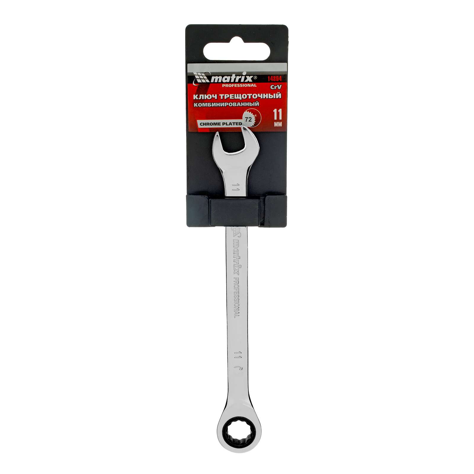 Ключ комбинированный трещоточный, 11 мм, CrV, зеркальный хром Matrix Professional в Уфе