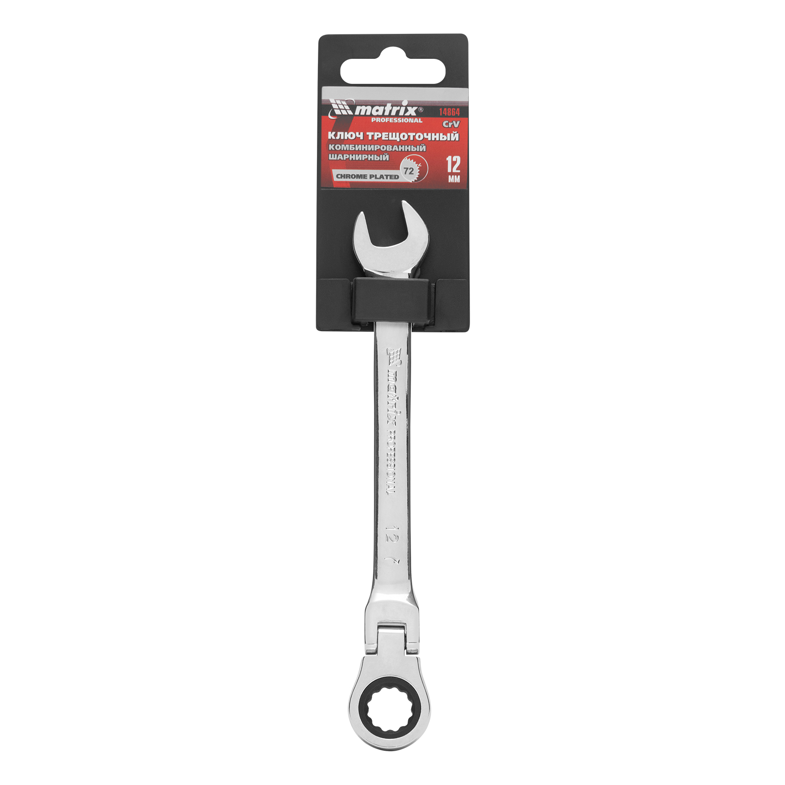 Ключ комбинированный трещоточный, 12 мм, CrV, шарнирный, зеркальный хром Matrix Professional в Уфе