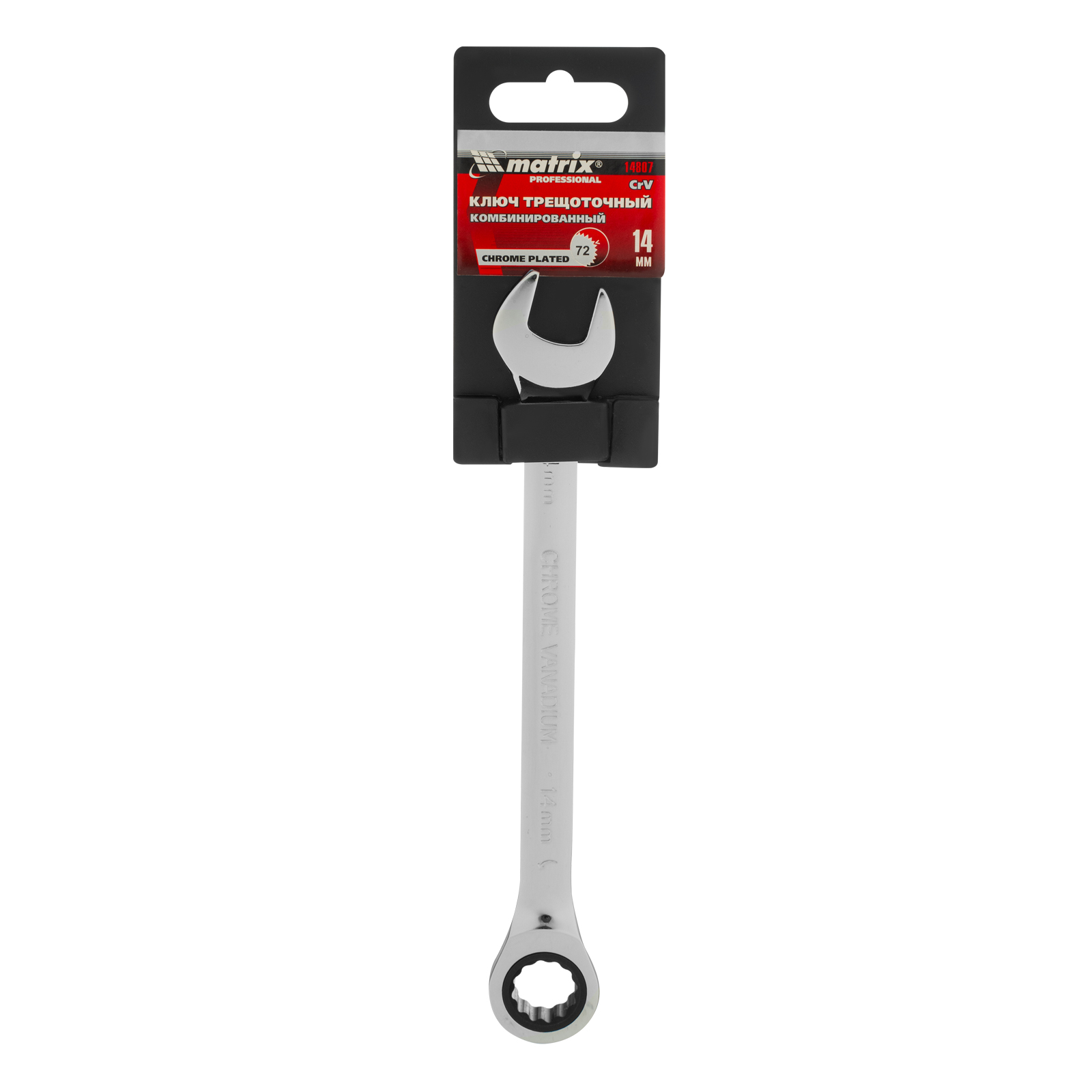 Ключ комбинированный трещоточный, 14 мм, CrV, зеркальный хром Matrix Professional в Уфе