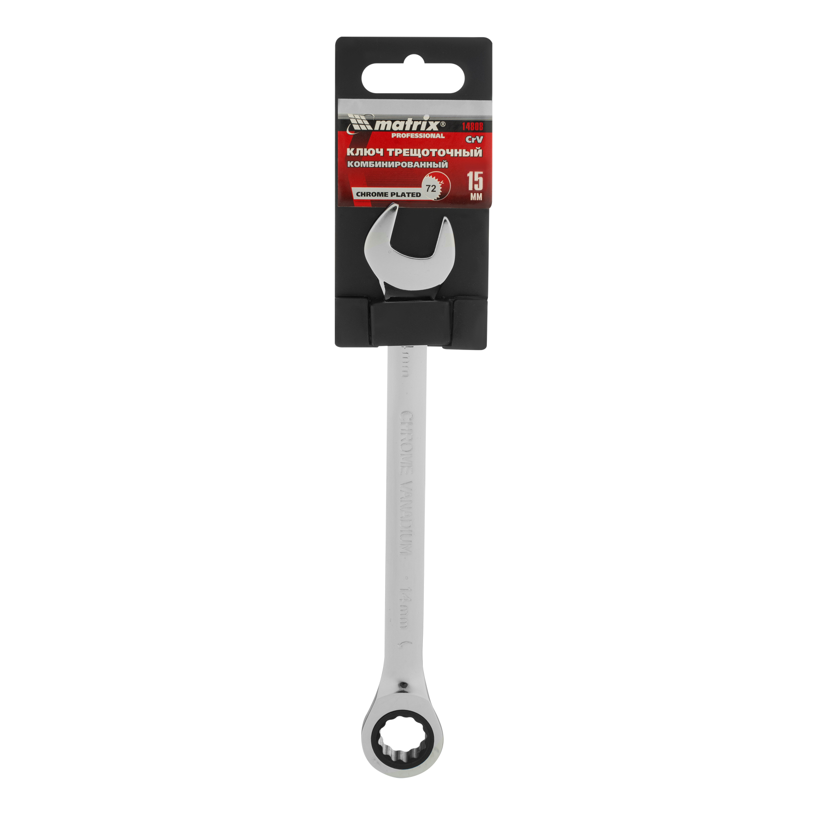 Ключ комбинированный трещоточный, 15 мм, CrV, зеркальный хром Matrix Professional в Уфе