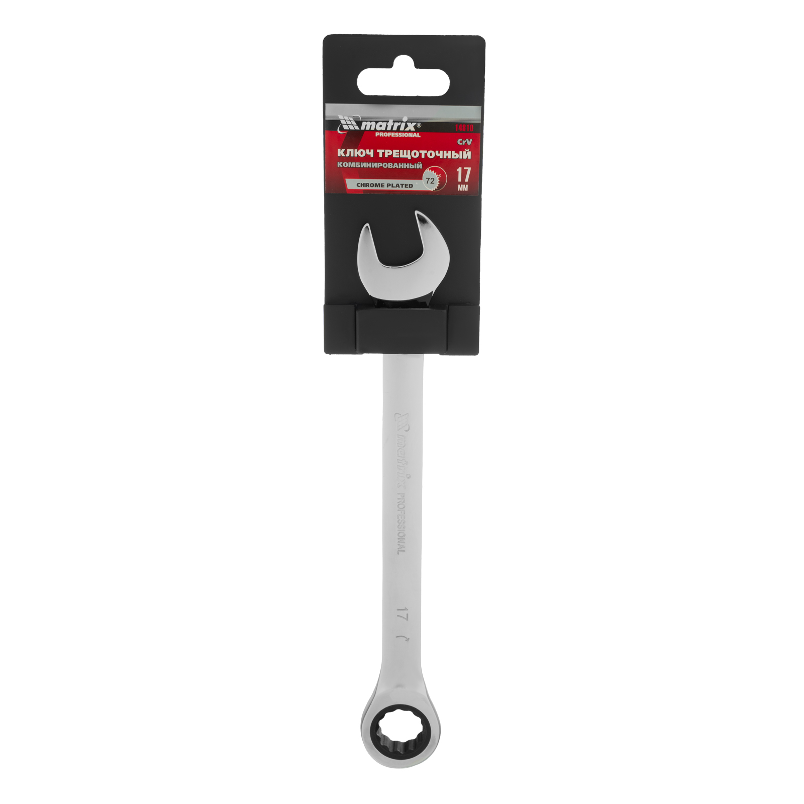 Ключ комбинированный трещоточный, 17 мм, CrV, зеркальный хром Matrix Professional в Уфе