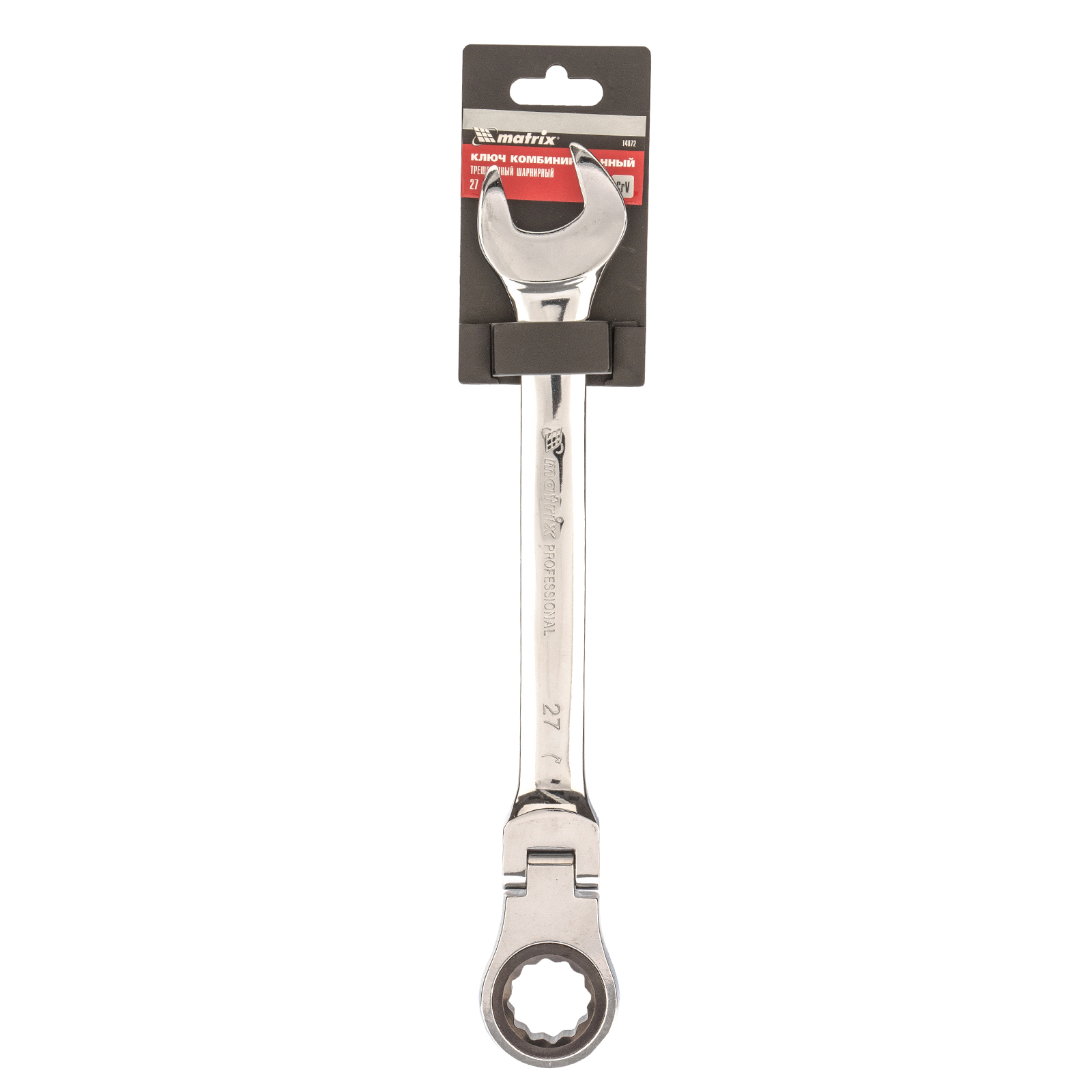 Ключ комбинированный трещоточный, 27 мм, CrV, шарнирный, зеркальный хром Matrix в Уфе