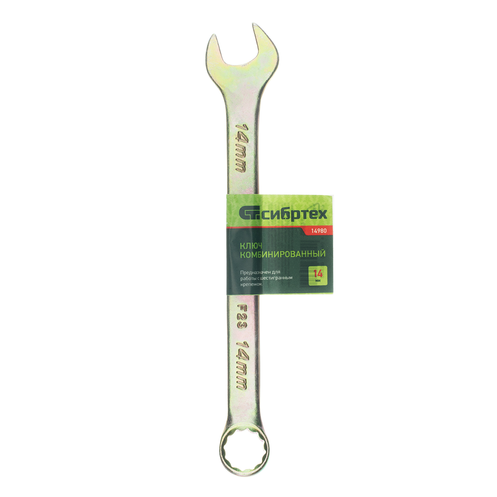 Ключ комбинированный, 14 мм, желтый цинк Сибртех в Уфе