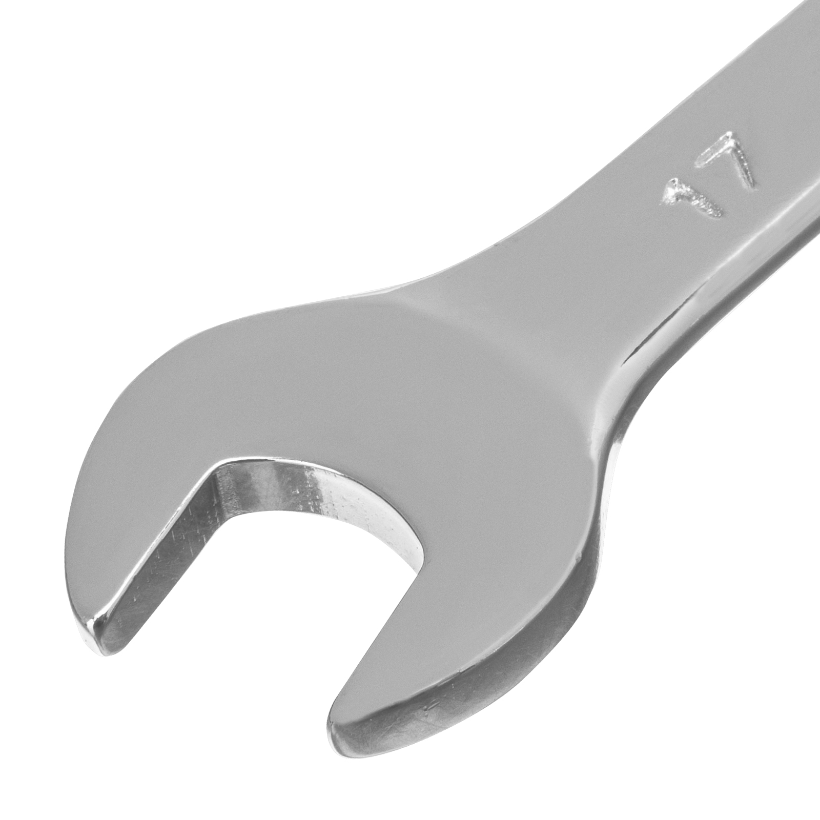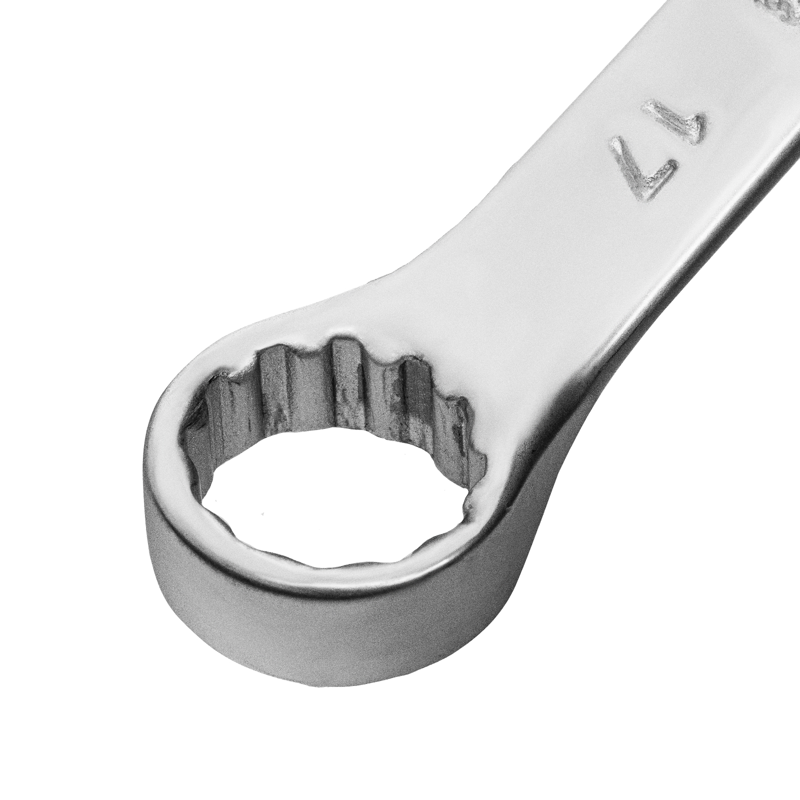 Комбинированный ключ Matrix 15113 размером 17 мм, из стали CrV, с покрытием «матовый хром», пригодится во время ремонтных работ дома или в гараже. С его помощью можно быстро монтировать и демонтировать крепежные элементы. Угол наклона кольцевого зева относительно плоскости инструмента составляет 15°, поэтому ключом удобно работать в труднодоступных местах.