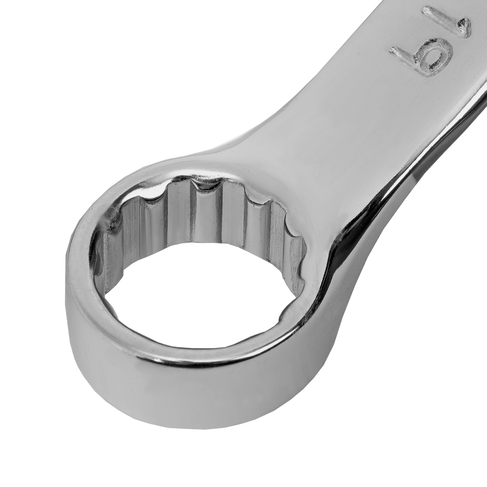Комбинированный ключ Matrix 15115 размером 19 мм, из стали CrV, с покрытием «матовый хром», пригодится во время ремонтных работ дома или в гараже. С его помощью можно быстро монтировать и демонтировать крепежные элементы. Угол наклона кольцевого зева относительно плоскости инструмента составляет 15°, поэтому ключом удобно работать в труднодоступных местах.