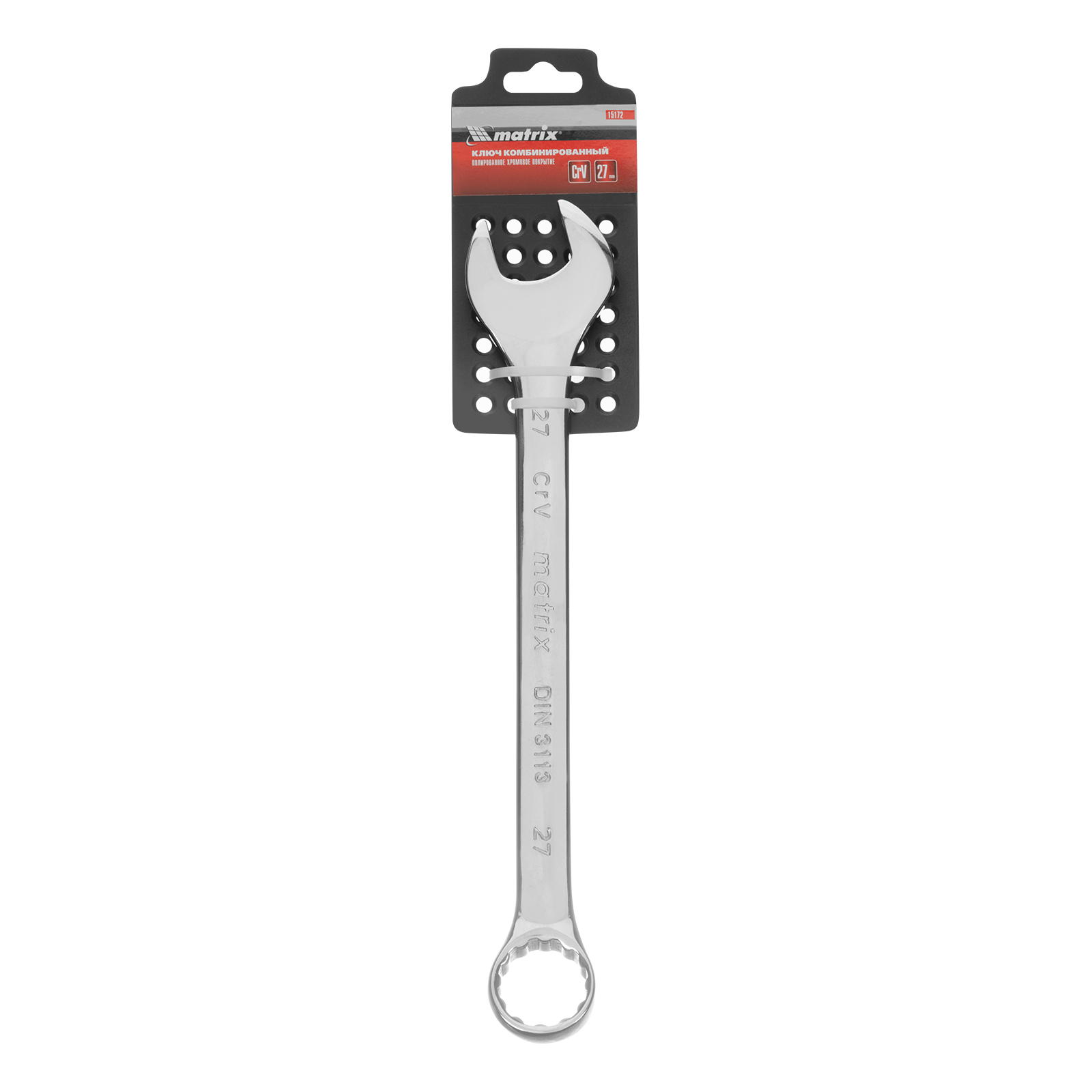 Ключ комбинированный, 27 мм, CrV, полированный хром Matrix в Уфе