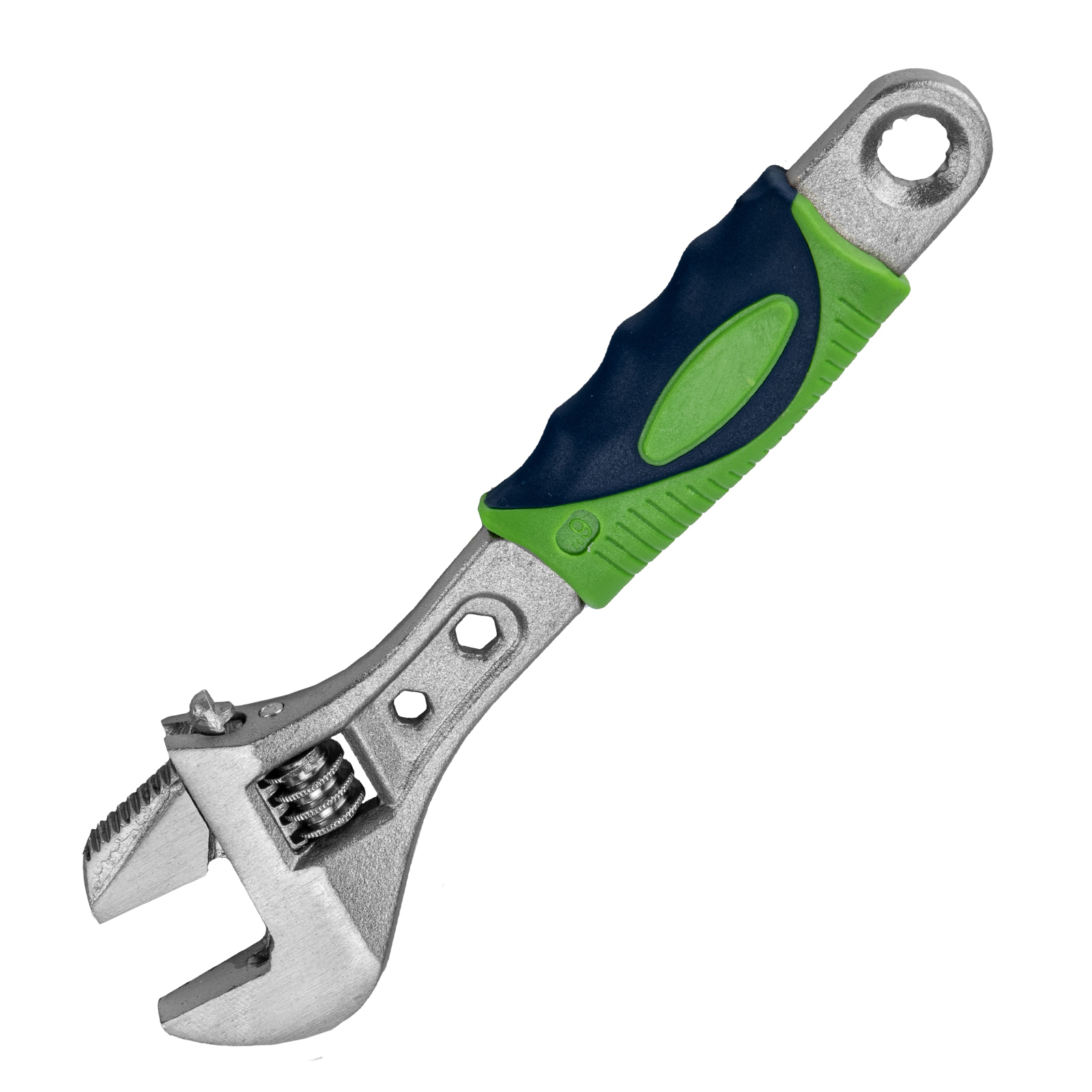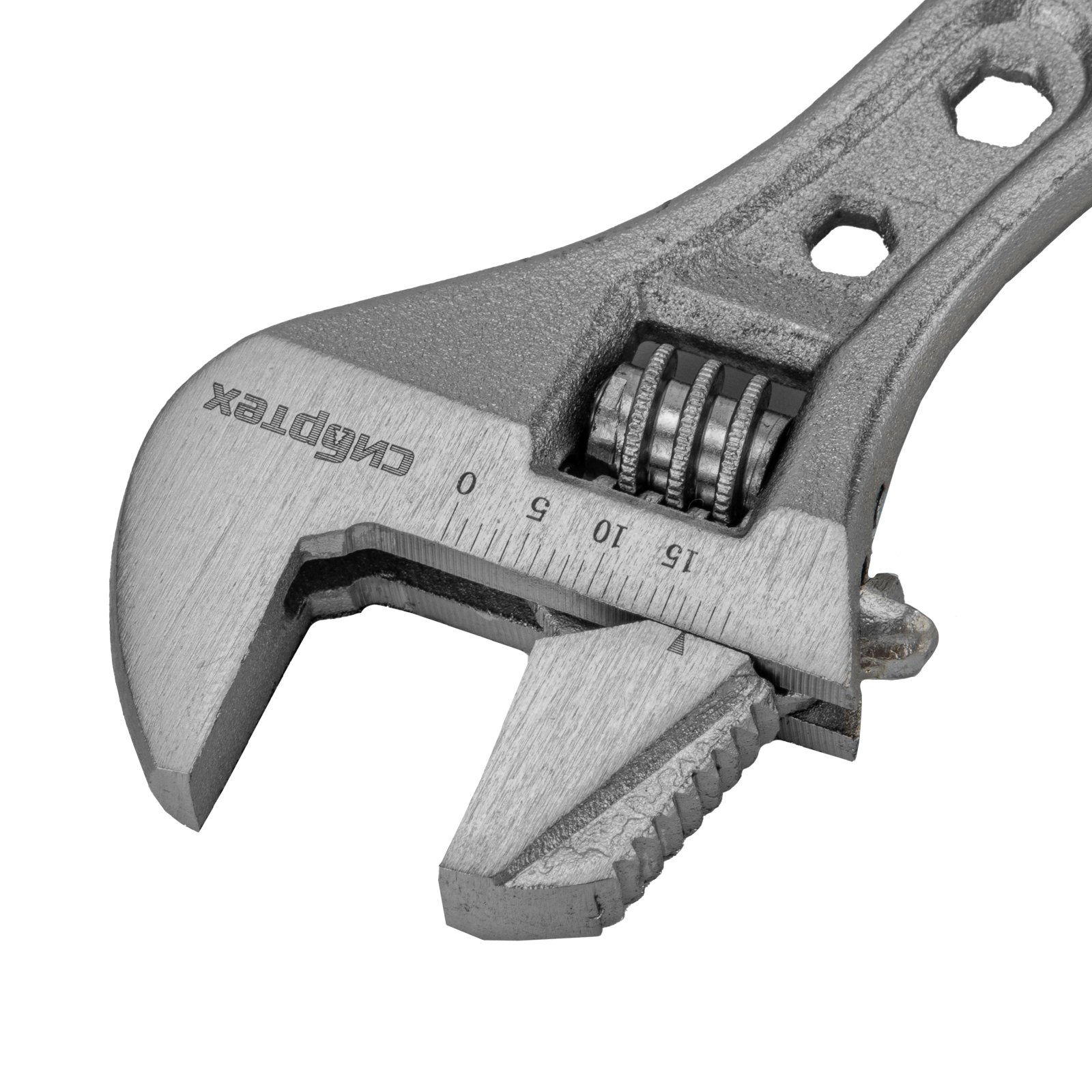 Разводной ключ Сибртех 15597 длиной 150 мм, с переставной губкой и двухкомпонентной рукояткой, предназначен для выполнения монтажных работ. Позволяет справляться с болтами разного размера и способен заменить целый арсенал гаечных ключей. Переставная губка с зазубринами позволяет использовать ключ для работы предметами без специального профиля, например, трубами.