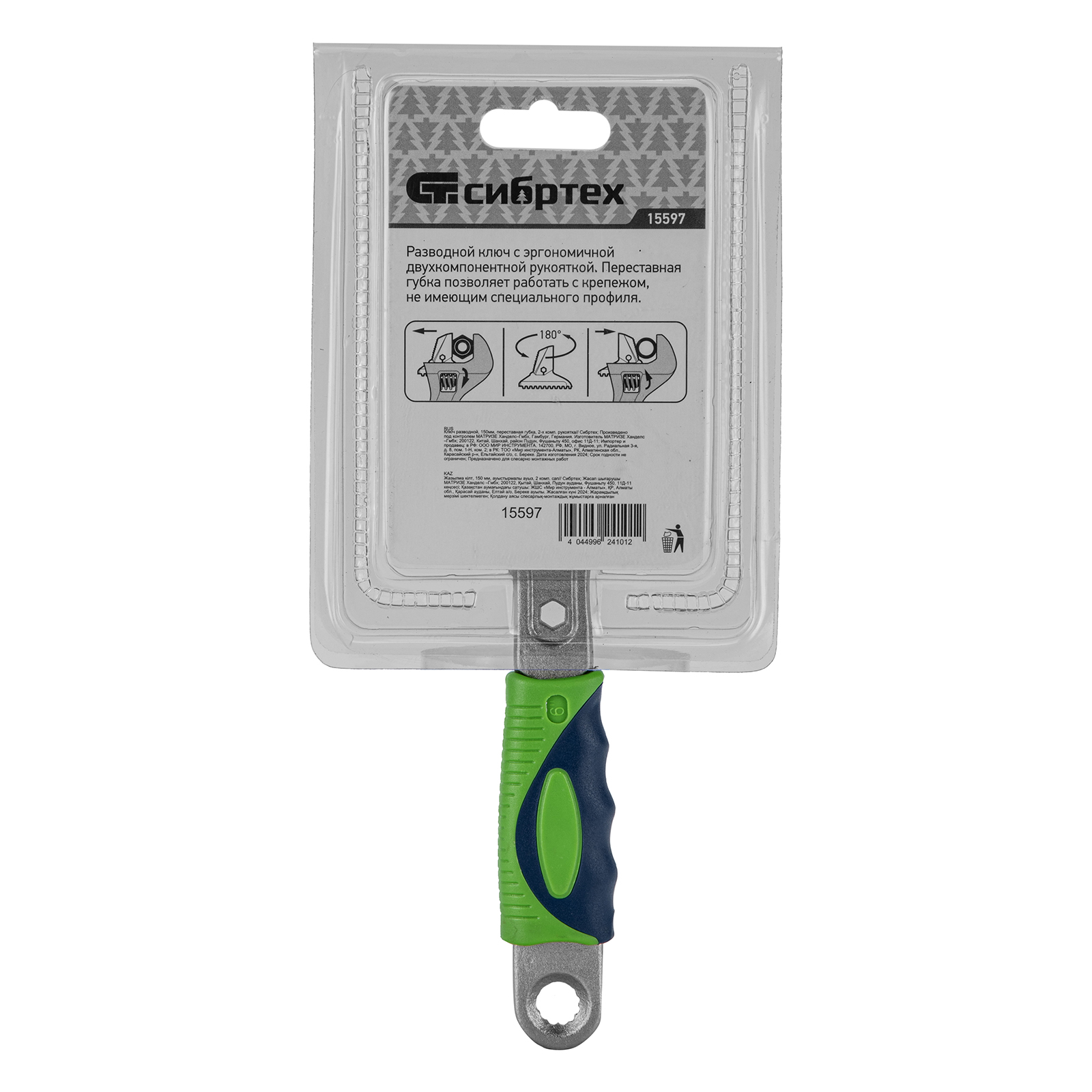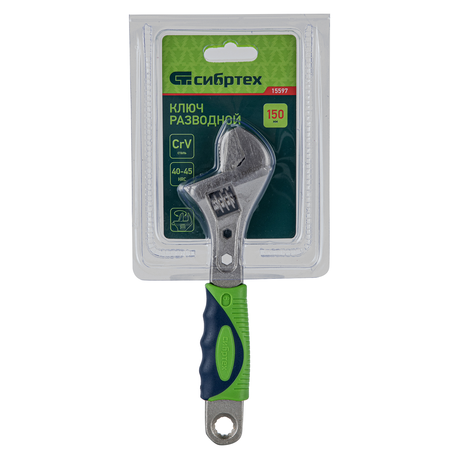 Ключ разводной, 150мм, переставная губка, 2-х комп. рукоятка Сибртех в Уфе