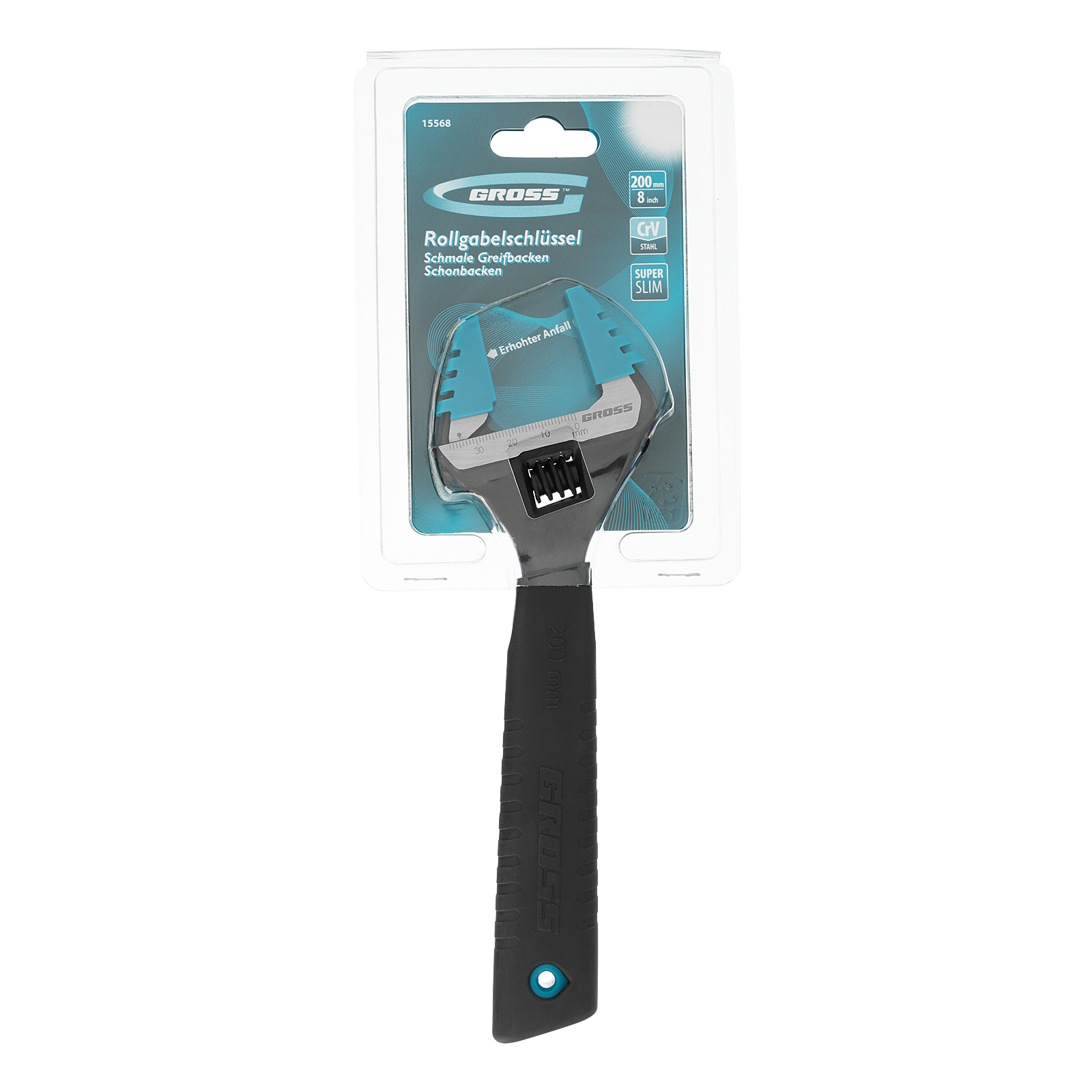Ключ разводной, 200 мм, CrV, тонкие губки, защитные насадки Gross в Уфе