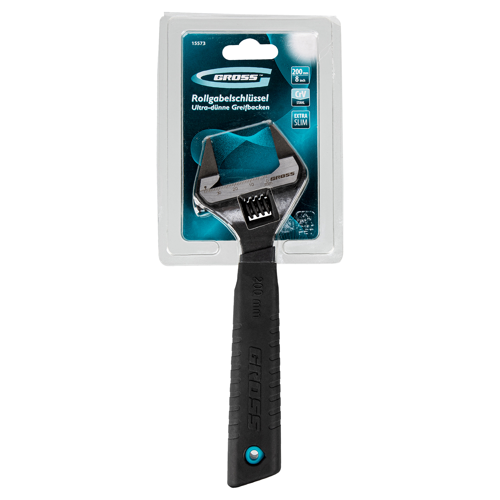 Разводной ключ Gross 15573 длиной 200 мм, из стали CrV, с ультратонкими губками, оптимален для монтажа и демонтажа крепежных элементов диаметром до 38 мм. Имеет широкую область применения: сантехнические работы, мелкий бытовой ремонт, полупрофессиональное использование и т. д. Благодаря ультратонким губкам инструмент особенно удобен для работы в труднодоступных местах.