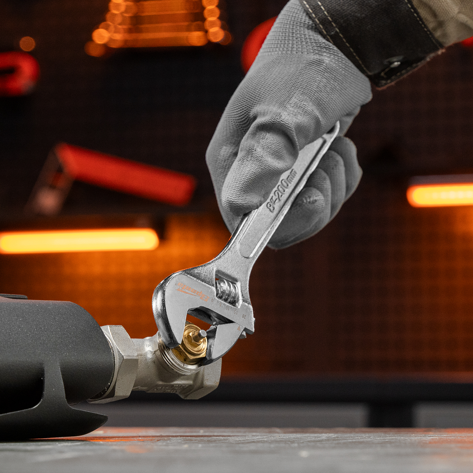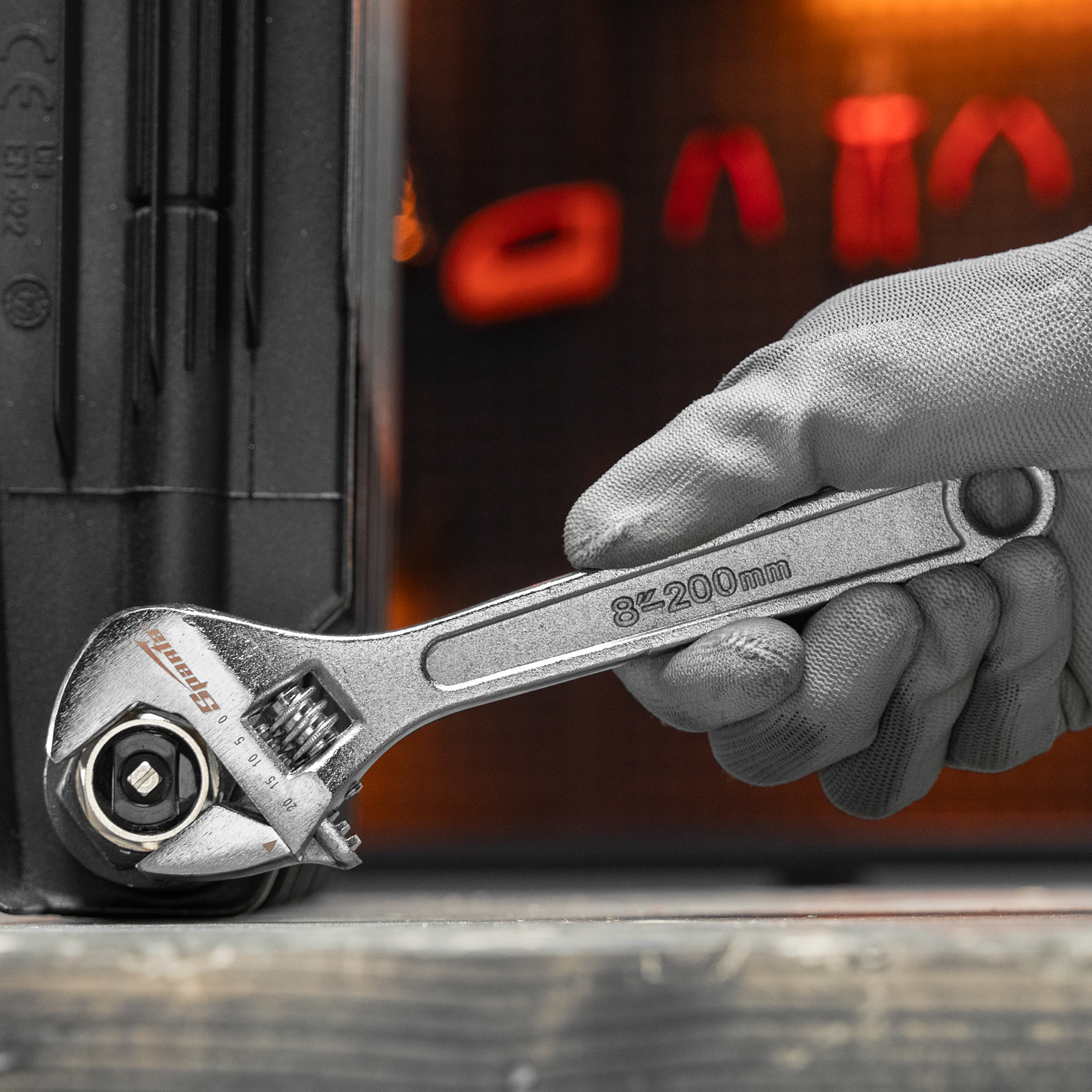 - Точный захват деталей — на ключ нанесена градуировка, а на подвижную губку — точечная риска.