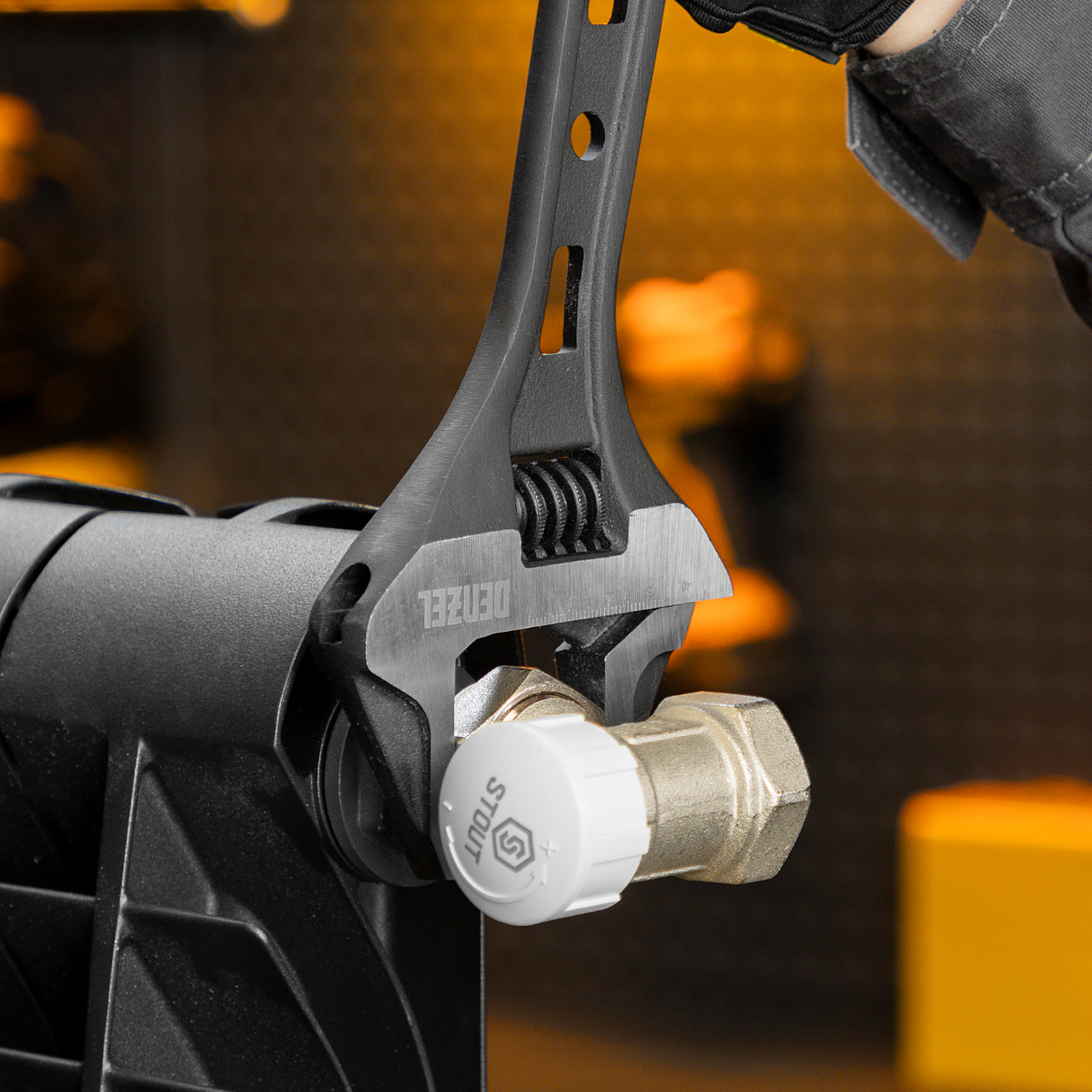 - Удобная эксплуатация — метрическая линейка на ключе помогает выставить нужный размах зева.