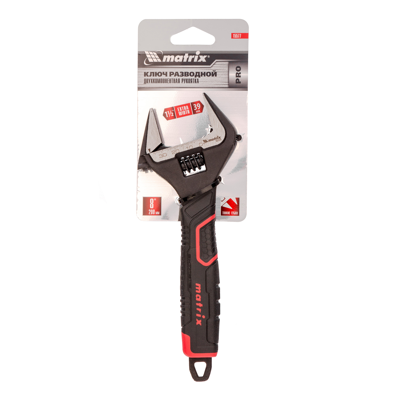 Ключ разводной, тонкие губки, фосфатированный, двухкомпонентная рукоятка, 200 мм, PRO Matrix в Уфе