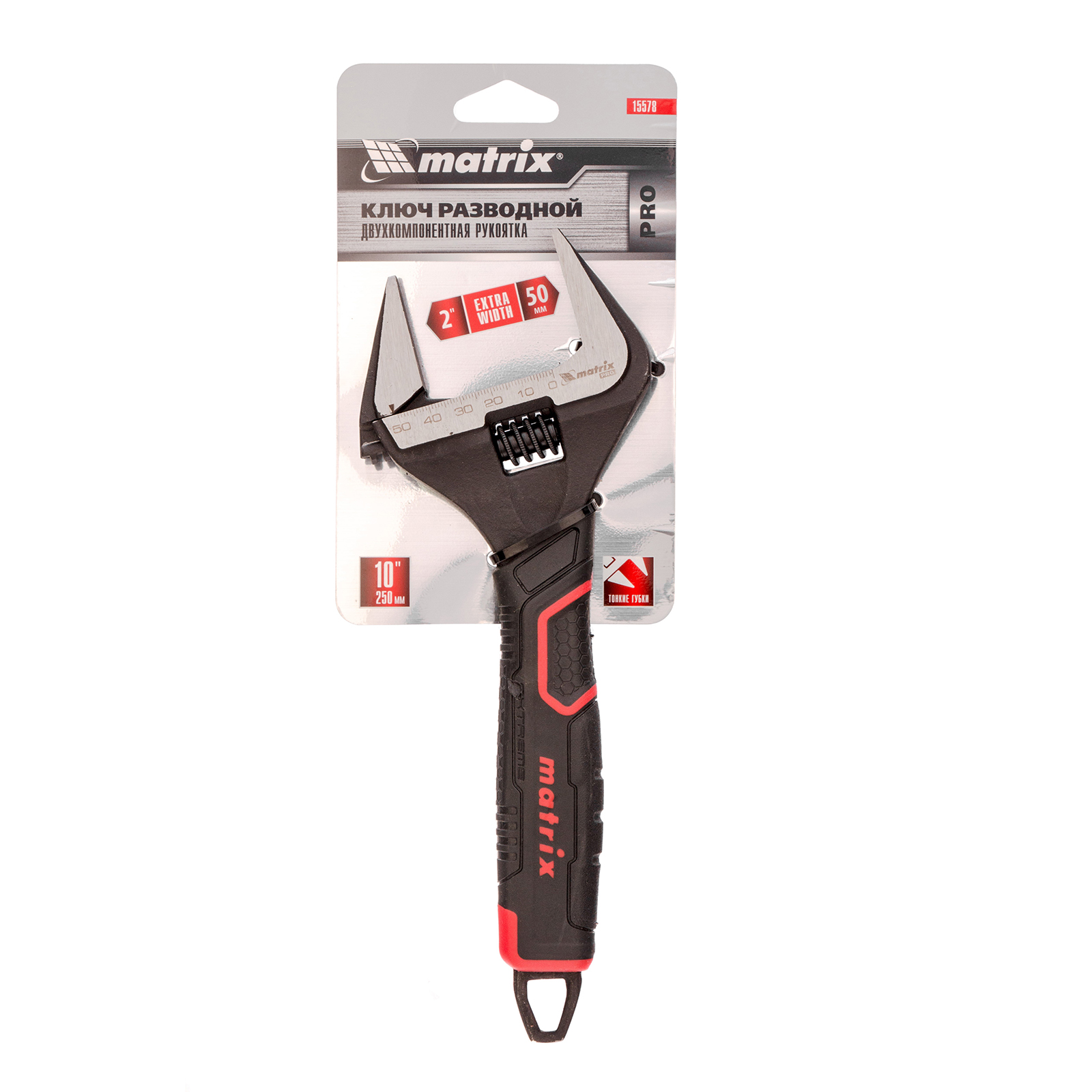 Ключ разводной, тонкие губки, фосфатированный, двухкомпонентная рукоятка, 250 мм, PRO Matrix в Уфе
