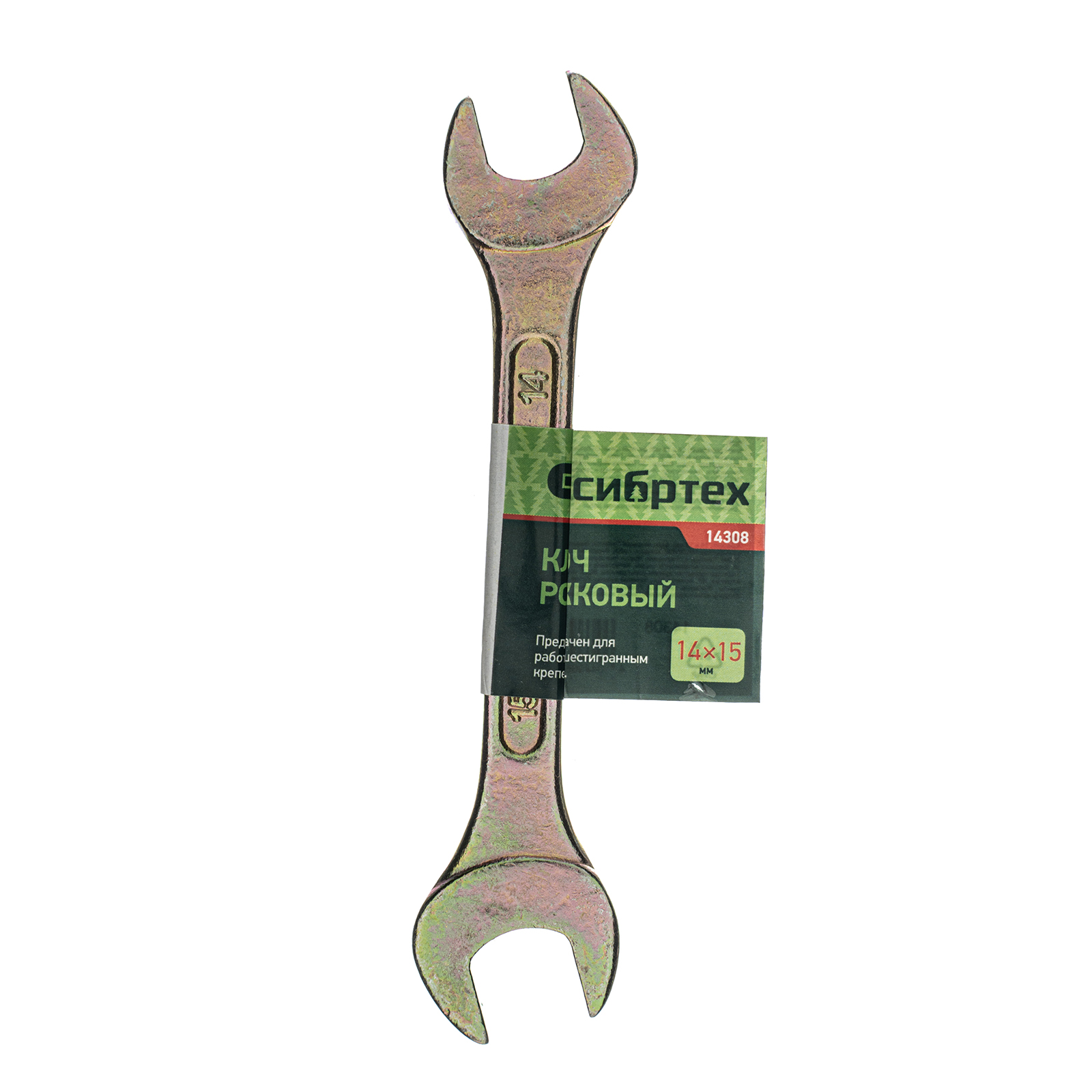 Ключ рожковый, 14 х 15 мм, желтый цинк Сибртех в Уфе
