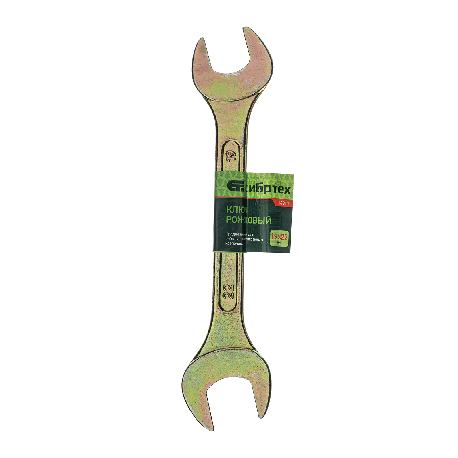 Ключ рожковый, 19 х 22 мм, желтый цинк Сибртех в Уфе