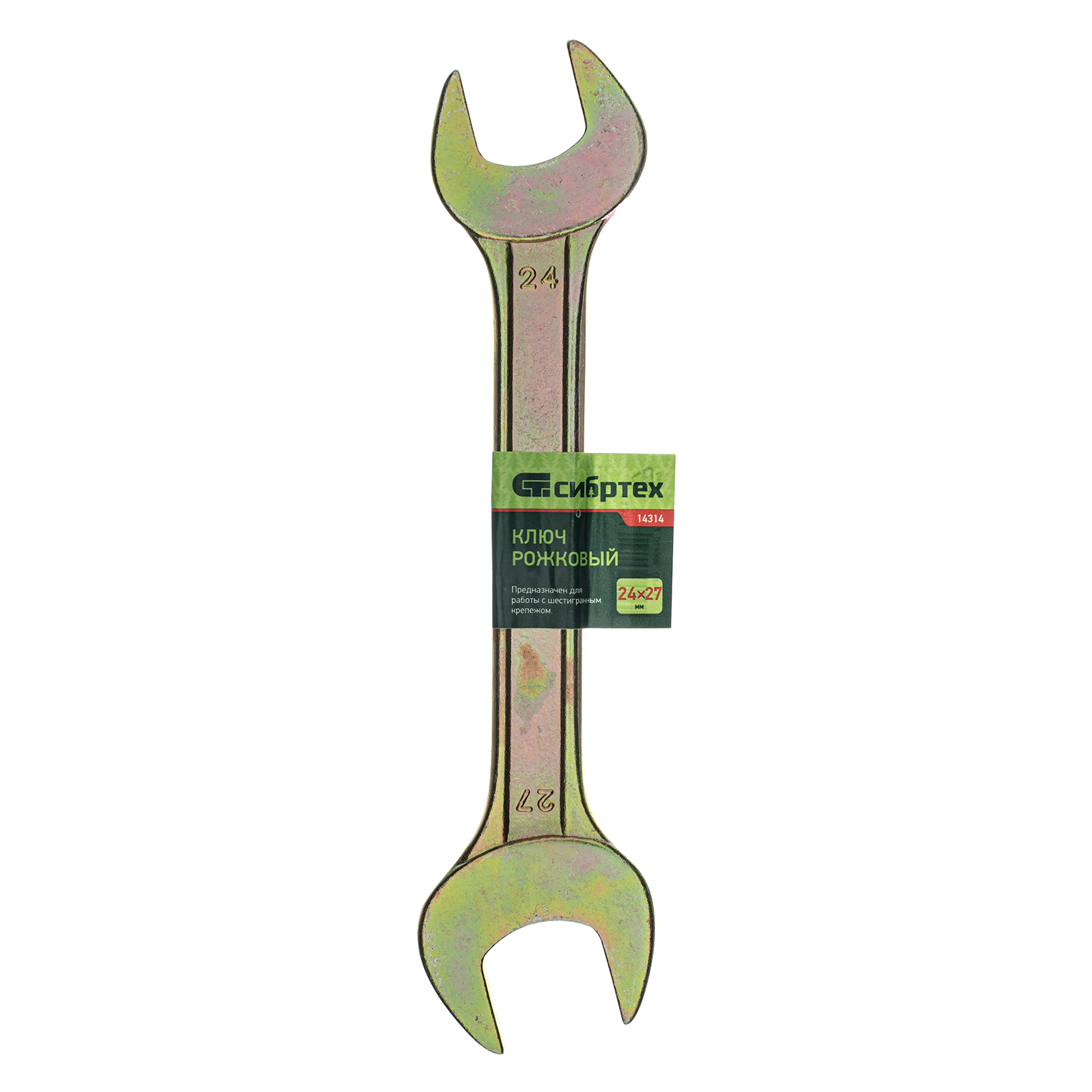 Рожковый ключ Сибртех 14314 с покрытием из желтого цинка имеет две рабочие части с размером зева 24 и 27 мм и предназначен для закручивания и откручивания резьбовых крепежей с шестигранными головками. Губки расположены под небольшим углом к оси тела ключа, что повышает удобство работы в ограниченном пространстве. Инструмент пригодится для проведения монтажных работ, сборки и разборки оборудования, ремонта техники, а также будет полезен в быту.