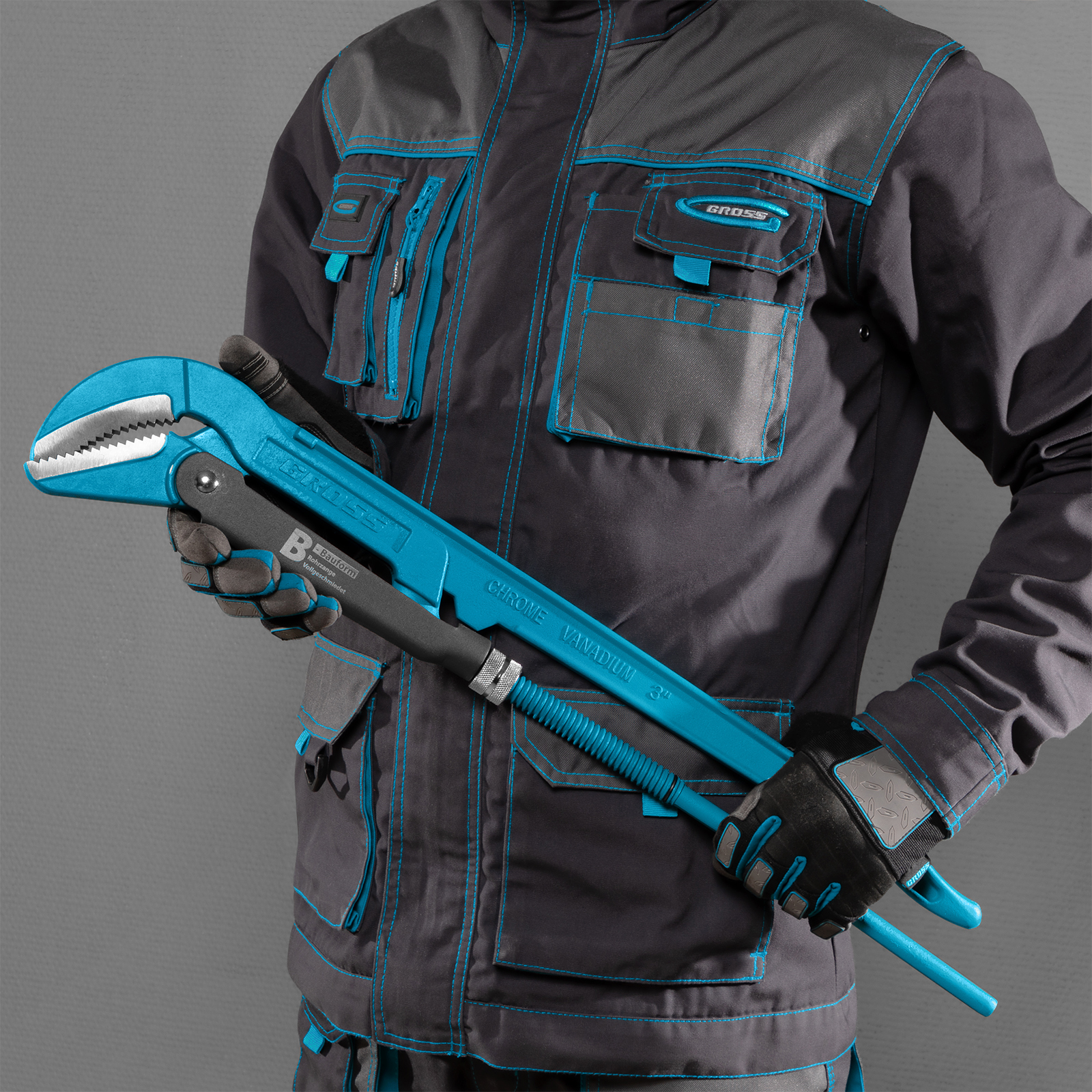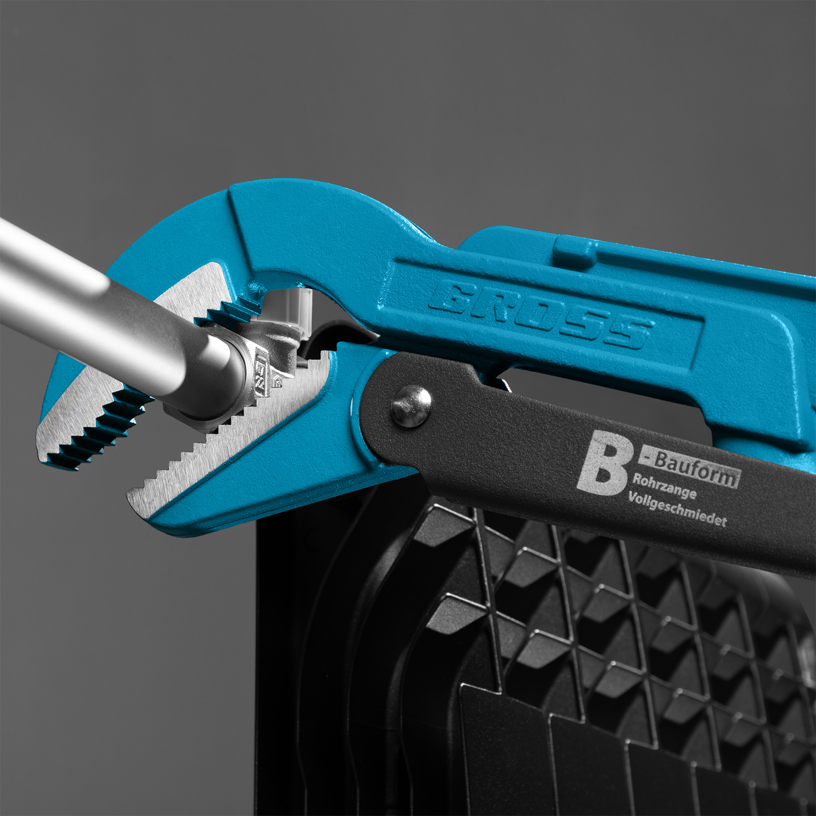 - Высокая прочность — цельнокованый корпус изготовлен из хромованадиевой стали, а губки закалены до твердости 57-60 HRC.