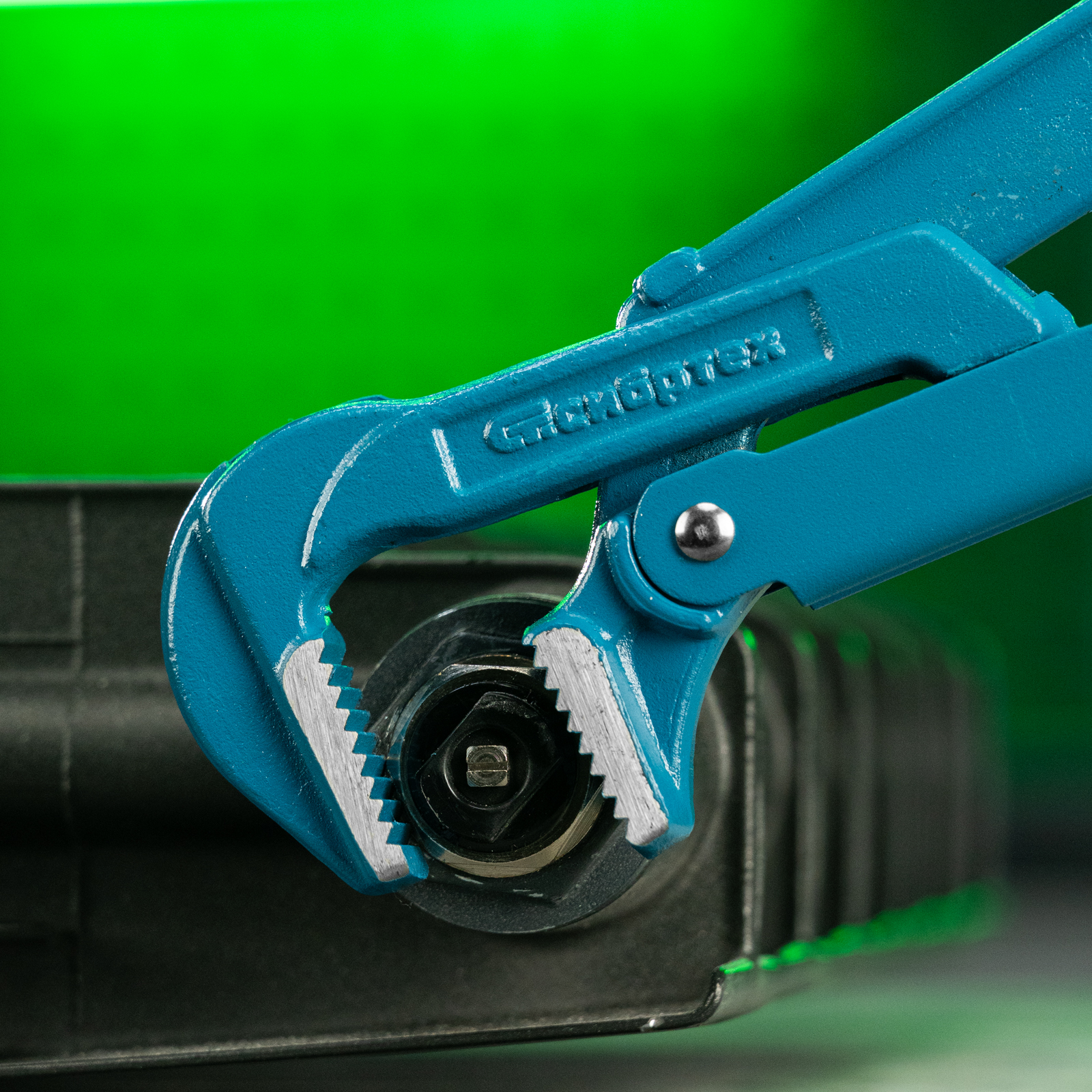 - Прочность и долговечность — литая конструкция из закаленной легированной стали устойчива к нагрузке кручения, губки закалены до твердости 48-52 HRC.