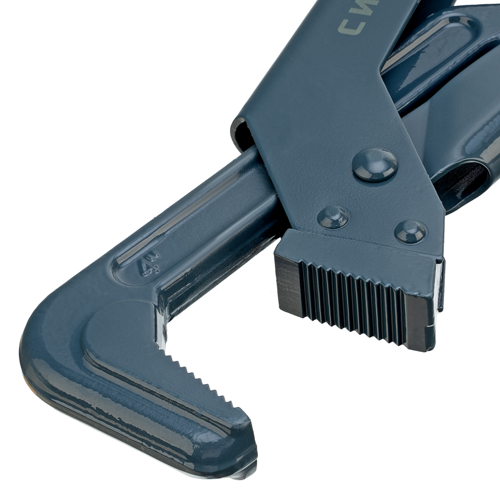 - Прочность и долговечность — кованая конструкция из закаленной легированной стали обеспечивает высокий рабочий ресурс, губки закалены до твердости 48-52 HRC.