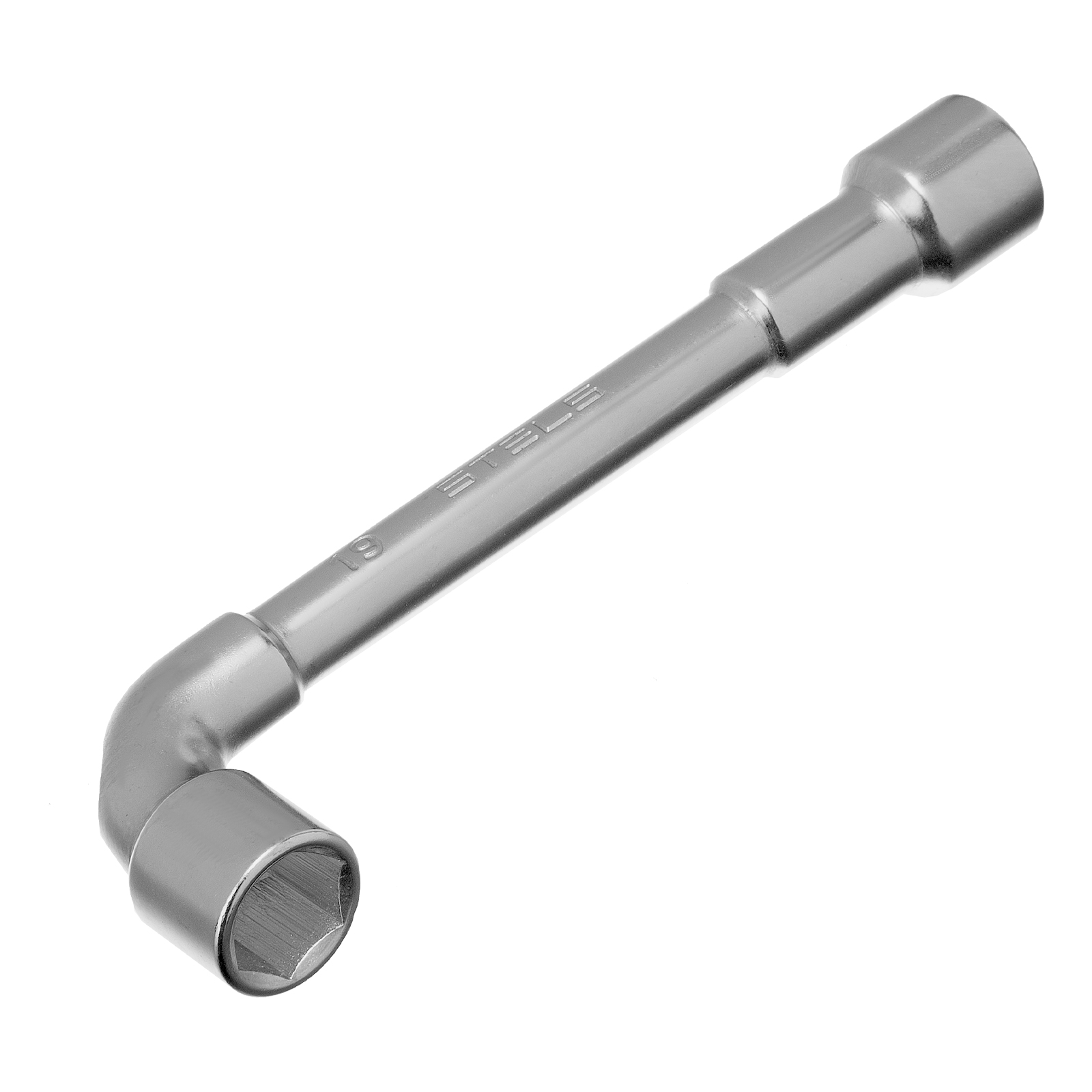Угловой проходной ключ Stels 14239 размером 19 мм используется для работы в труднодоступных местах, когда обычный рожковый или накидной ключ не достает до крепежа. Будет полезен частным и профессиональным мастерам.